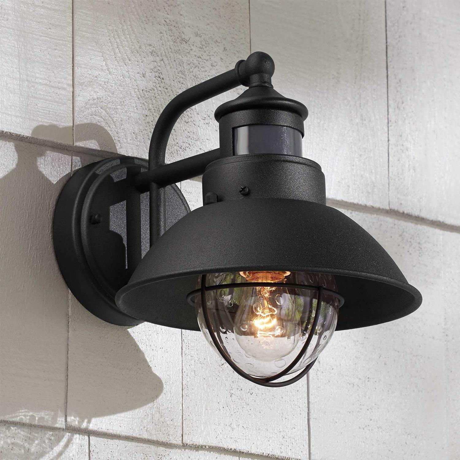 John Timberland Oberlin Rustic Farmhouse Outdoor Barn Light Fixture Black Dusk to Dawn Motion Sensor 9 Clear Seedy Glass for Exterior Deck House Yard