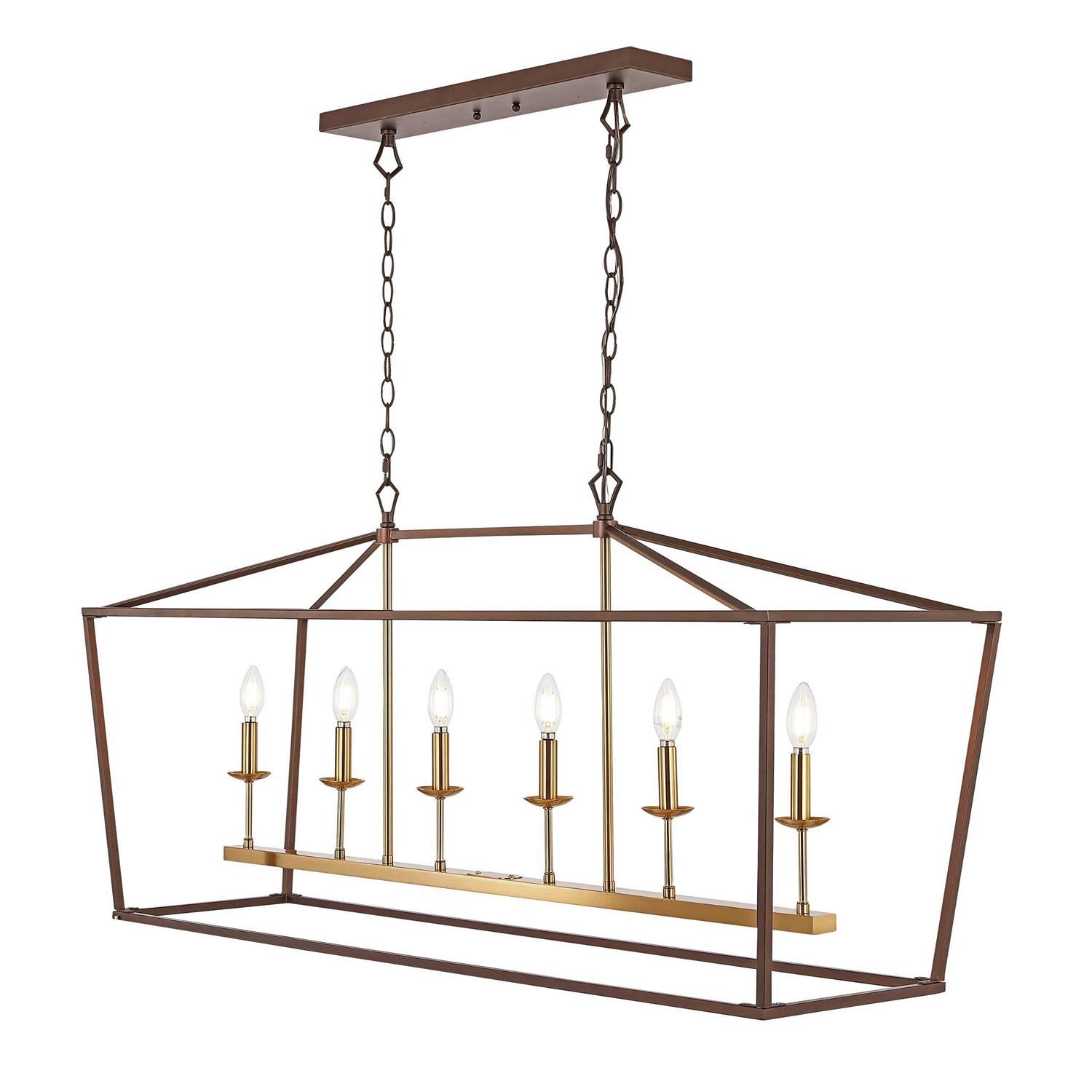 Take your dining ensemble from simple to stylish with this must-have chandelier pendant, inspired by vintage streetlamps. It showcases an open, geometric frame that is supported by 2 chains and features 6 candle-style bulbs. Try hanging it over your dining room table or suspend it above the kitchen island.