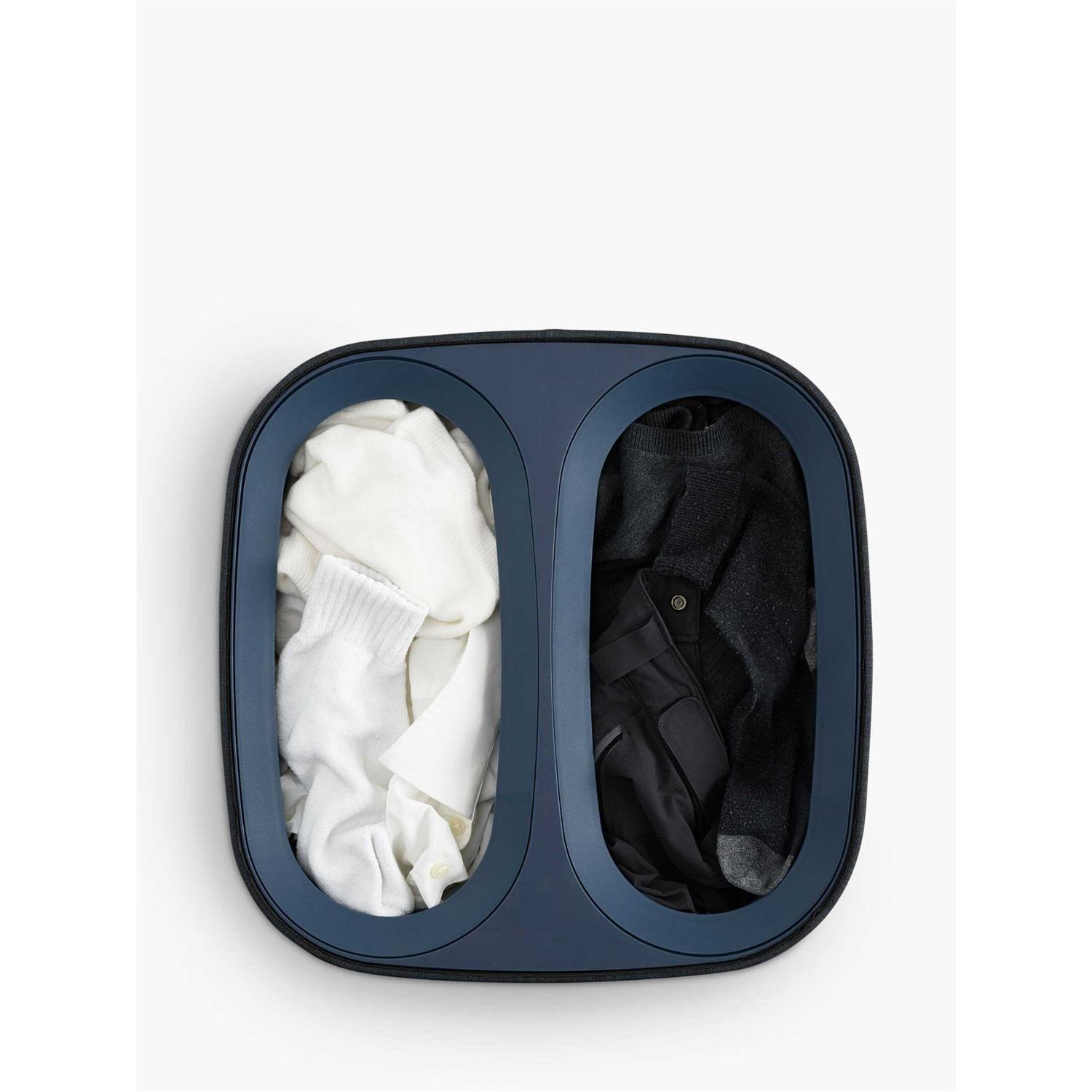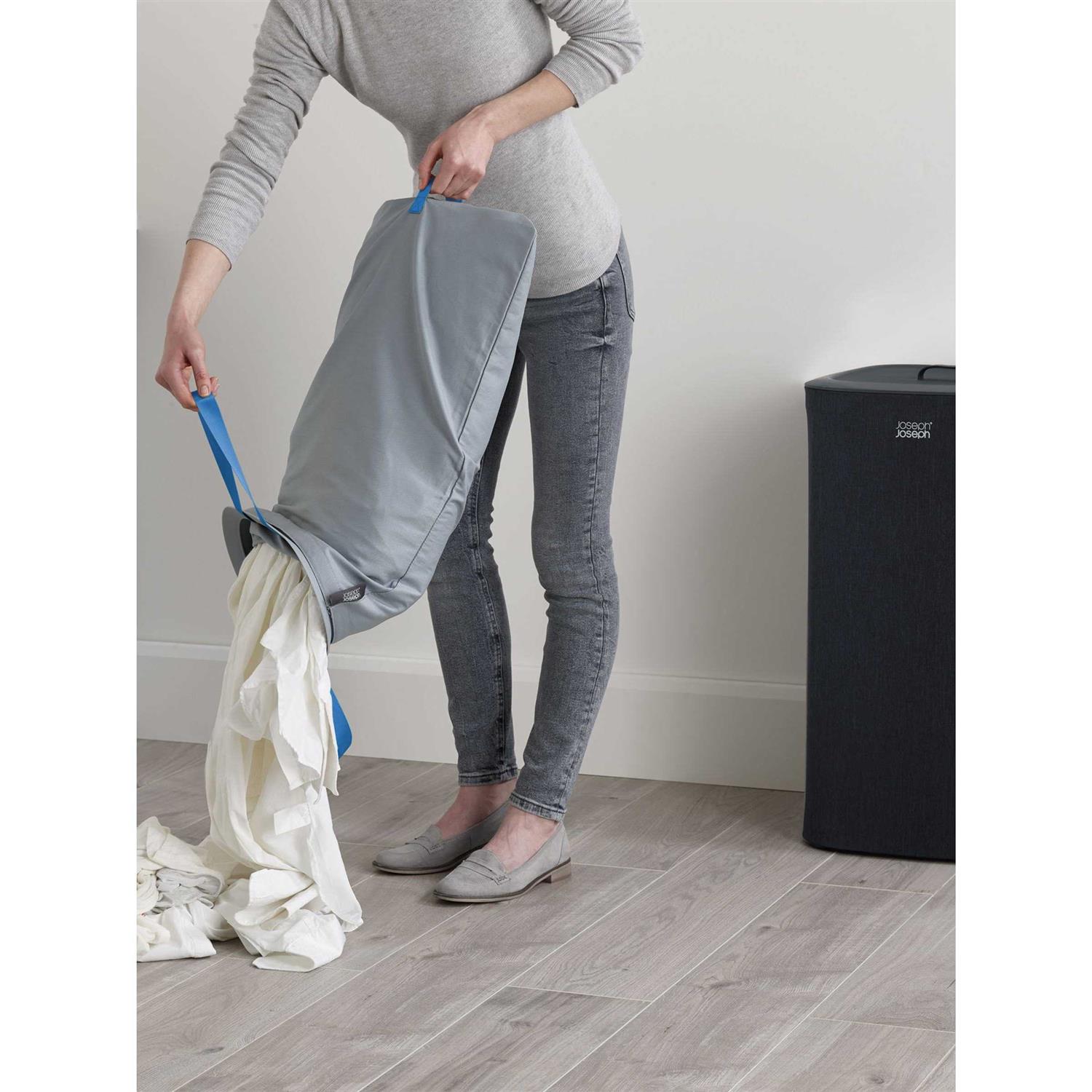 This dual-compartment Joseph Joseph Tota 60 Litre Laundry Separation Basket in stylish Carbon Black is the ultimate laundry solution for busy households. The innovative dual 30-litre compartments and removable tote bags with easy-carry handles make separating and transporting laundry a breeze. Simply sort your lights and darks into the two roomy compartments, then lift out each bag when it’s time to do a load. The helper handles on the base of the bags make emptying into your washing machine effortless. When you’re done with the laundry, the self-locating bags slide right back into place in the basket for neat, organized storage. With its sleek profile and space-saving flat-pack design, this laundry basket is perfect for placing in bedrooms, bathrooms or utility rooms. The durable polypropylene construction ensures this basket will hold up to years of regular use. Give your laundry routine an upgrade with the Joseph Joseph Tota Laundry Separation Basket. The manufacturer’s part number for this product is 50002. Take control of your laundry with this innovative laundry solution today.