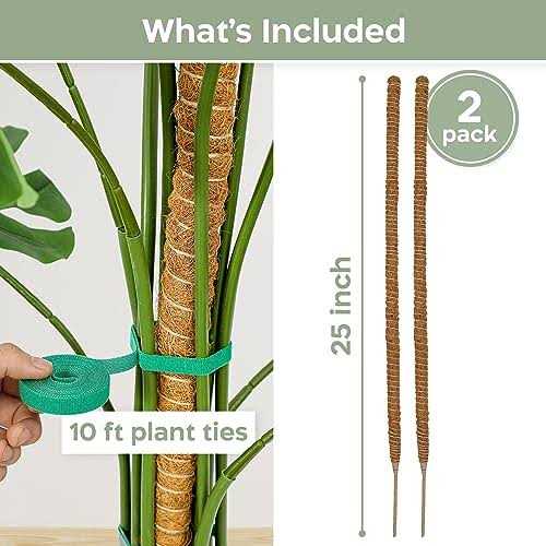 The easy-to-use design allows for quick and hassle-free installation Easy to bend into shape : Our moss poles can be easily bent into a variety of shapes, including hearts, arches, and even snake-like designs. This makes it easy to create a unique and personalized look for your climbing plants, while providing them with the support they need to thrive. Perfect for monstera and other climbers: Our bendable moss poles set provides reliable support for a variety of climbing plants, including monstera, pothos, and philodendron. As your plants grow, they will naturally latch onto the poles and climb upwards, creating a stunning display of greenery in your home. With moss poles, you can watch your plant grow and thrive in a safe and supportive environment. ️ Eco-friendly and clean: Our bendable moss poles are made of high-quality coconut palm fibers, a renewable and sustainable resource that is both breathable and non-shedding. Comes with Plant Ties : The set comes with 10 feet of sturdy plant ties that make it easy to attach your climbing plants to the poles. The ties are flexible and durable, so you can adjust them as your plants grow and they won’t damage delicate stems. moss poles