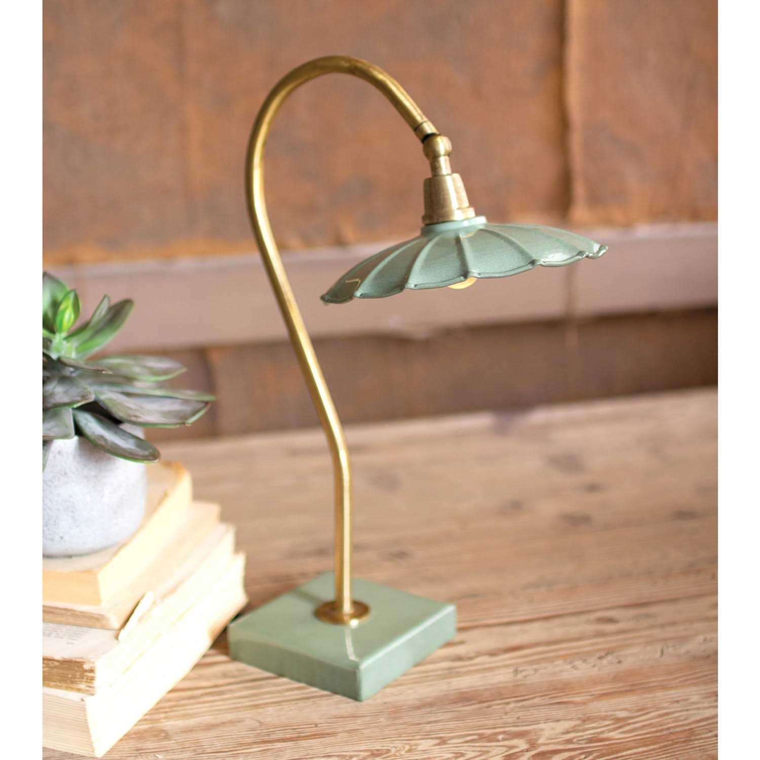 Kalalou Antique Brass Goose Neck Table Lamp with Enamel Shade