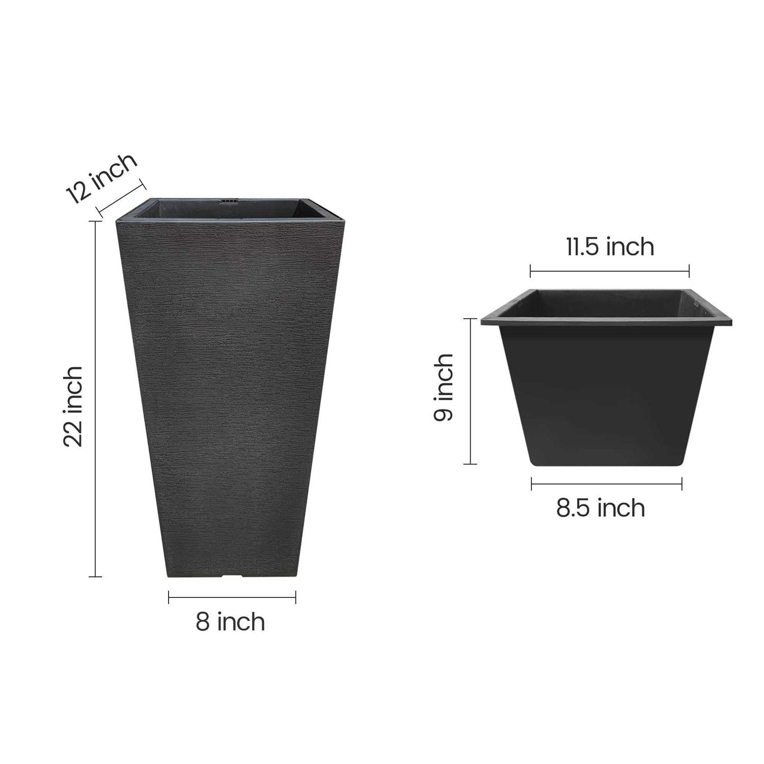Kante 22 inch Tall Planter Set of 2 Large Taper Planter for Outdoor Indoor Garden Patio Front Door