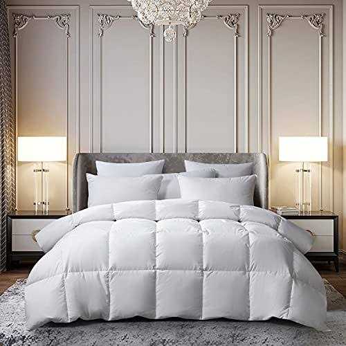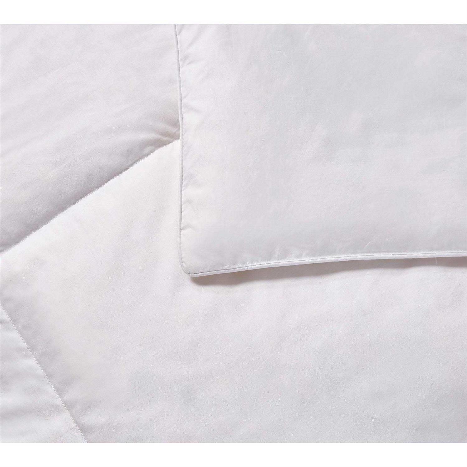 Layer your bed in luxury with this Kathy Ireland white goose feather and down comforter. It’s covered in pure cotton to provide you softness and make the bed more breathable, and the goose feather and goose down fill can keep you warm during the night. The end-to-end sewn-through box stitch construction ensures the fill is evenly distributed in each box and prevents the fill from shifting, creating an even distribution of warmth and a consistent loft.