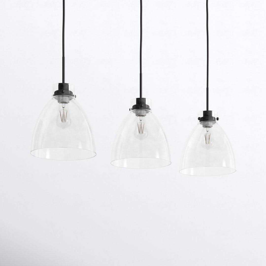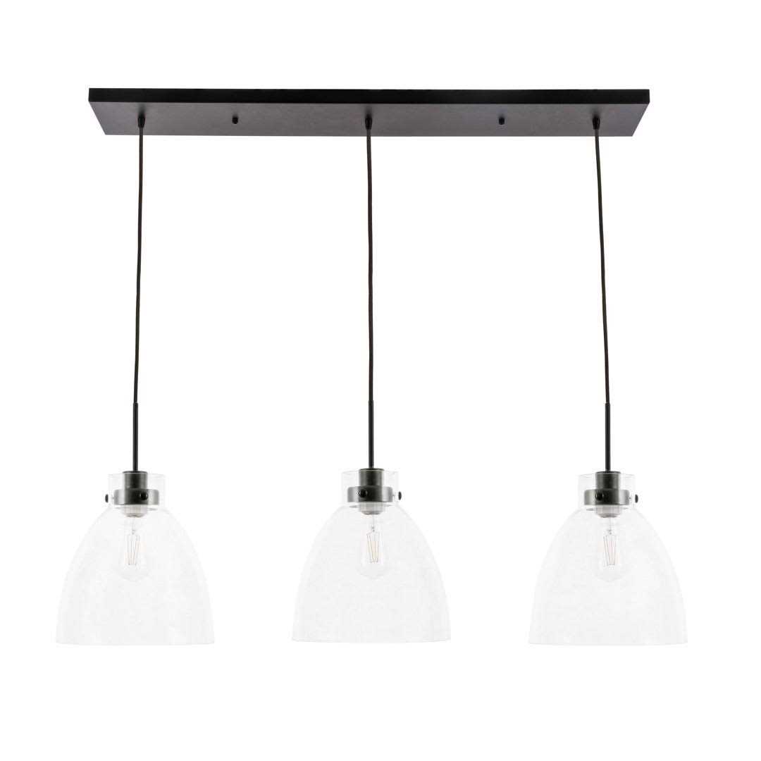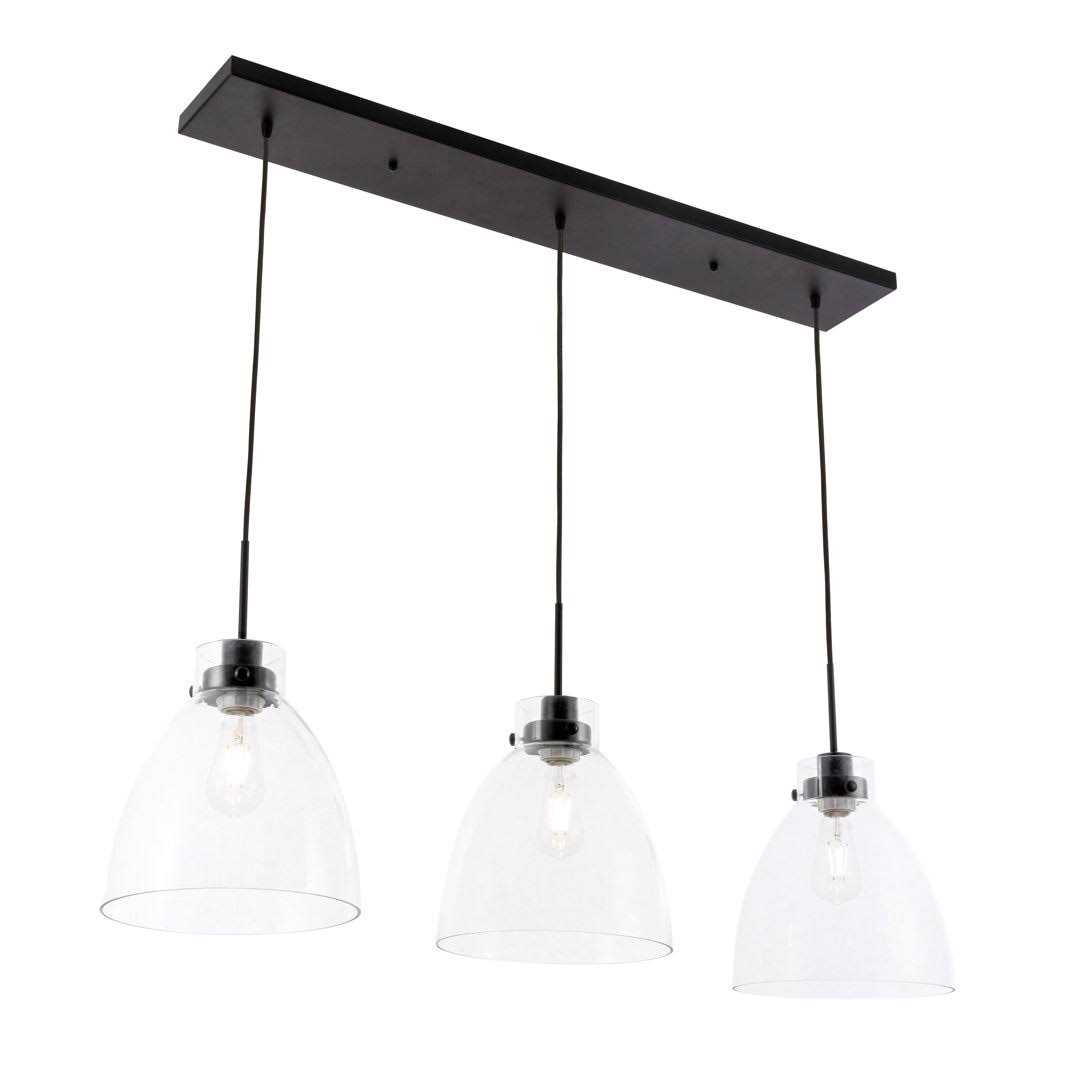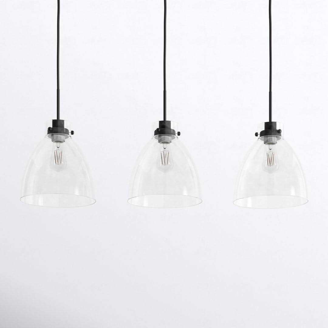 Trent Austin Design Sleek style and bright illumination come hand-in-hand in this 3-light pendant fixture. Crafted from iron, it features a trio of clear glass bell shades, each adding a luminous element to the industrial aesthetic. Three sockets suit 60W bulbs, which are sold separately, to cast light downward to illuminate your space. Up top, it hangs from a sloped ceiling-compatible bar canopy and three height-adjustable downrods. Best of all, its linear design makes it just right for your kitchen island or dining room table, and it’s compatible with a dimmer switch.