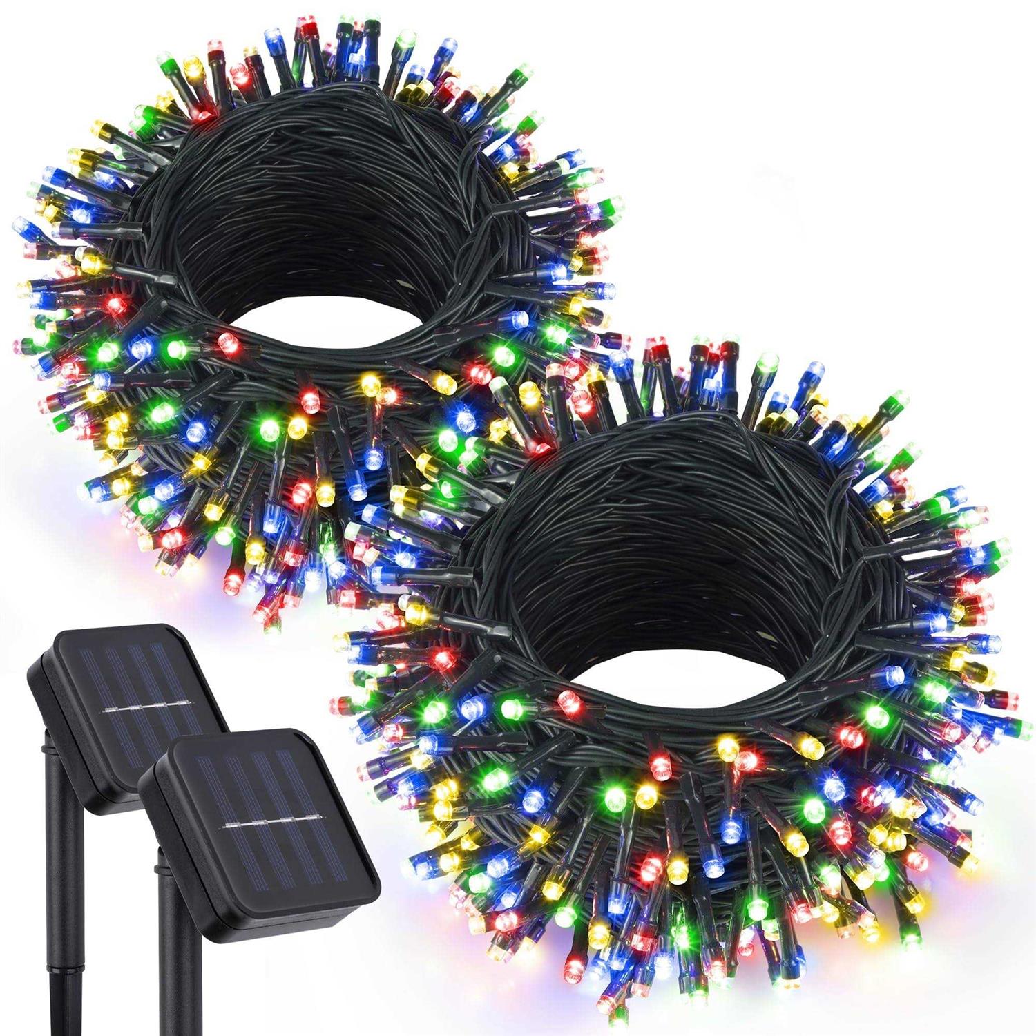 kemooie 2 Packs Solar string Lights 100 led 33ft 8 Twinkle Modes Green Solar Powered Fairy Lights waterproof For outdoor Tree Garden christmas Decorat