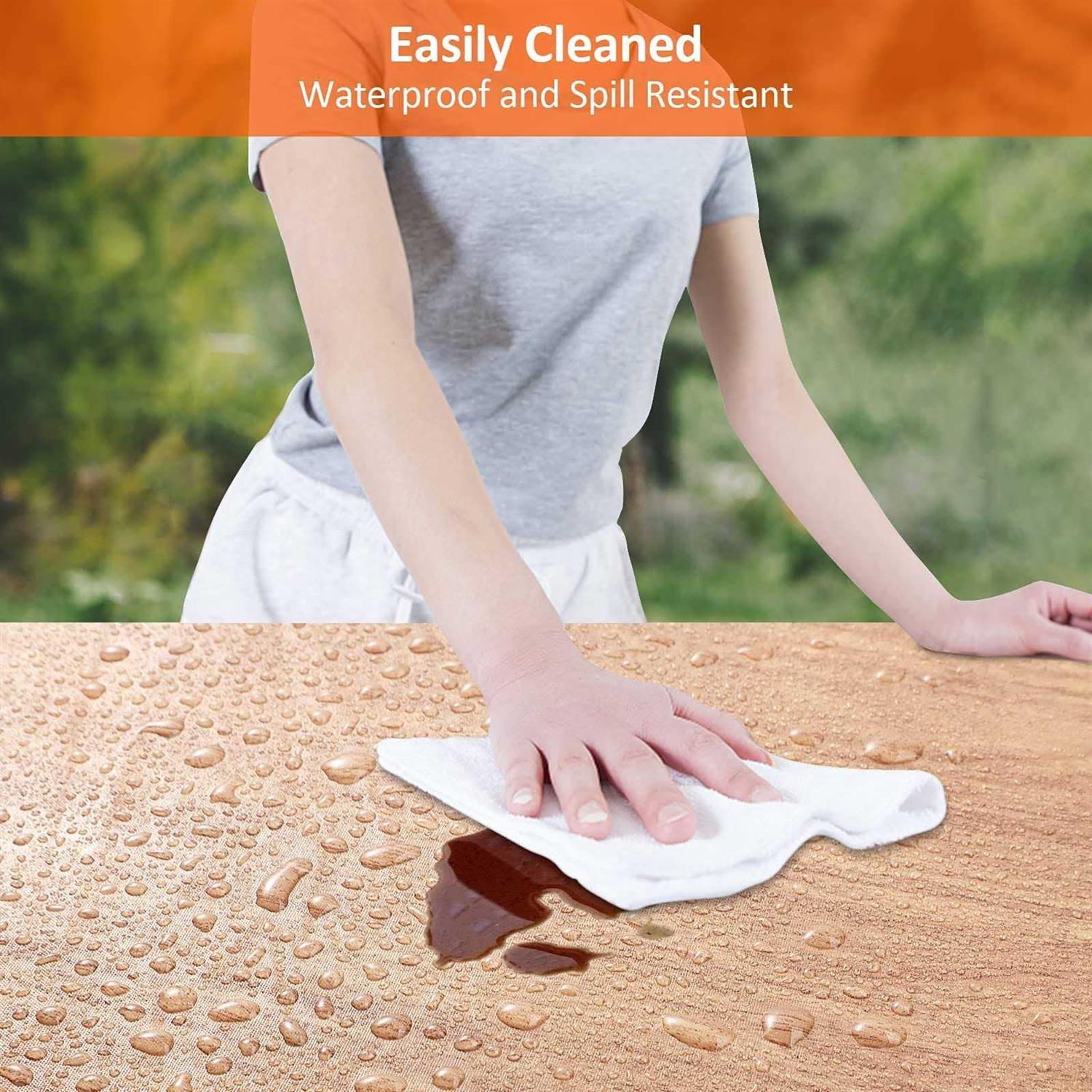 Tablecloth stretches to fit any 96″ X 30″ picnic table or trade show table, bench cover stretches to fit any 12″ X 96″ bench. The vinyl cover is fitted with elastic stretchable corners, to offer a snug and tight fit so the cover remains in place securely, all three pieces boast a slightly larger cut for a better fit. Functional & Beautiful: With bright colors, flannel backing and classic black-white checkered patterns, this vinyl tablecloth not only gives your table a new stylish look, but also protects your table from scratches, beverage spill, and kids arts & crafts mishaps, making your table last longer. The elasticized edges keep the vinyl tablecloth tightly fitted and stay free from moving / falling off. It works in both dining room and outdoor settings Easy to Use and Clean: No stains of liquid/oil can be stubborn on this PVC vinyl tablecloth, because it is water and oil-proof and all liquids bead up on its surface. The vinyl (plastic) tablecloth is also much easier to wipe clean than fabric tablecloths. Creases, wrinkles or fold lines on vinyl can be easily removed by using a hair dryer: use the low-heat setting and use your hand to smooth out the creases as you apply the hot air to the surface. Serves Multi-Purposes: The ease of cleaning makes this vinyl table cover great for general all-purpose activities like dining, painting, board gaming, and working with modeling clay. It is super kids and family-friendly and keeps dirt and dust out of your outdoor patio tables. Easy to Fold and Store: This vinyl tablecloth has a quality, liquid-proof vinyl top; with a soft flannel backing to reduce skidding and slipping. Made from 100% vinyl with 100% polyester flannel backing. Easy to fold and store when not in use