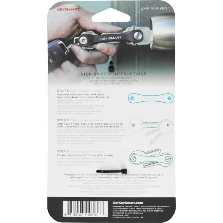 Originally billed as “the minimalist key ring with maximum strength”, the KeySmart line was invented in Chicago and brought to life by a Kickstarter campaign in 2013 (then the most successful campaign to date). They are robust and thoughtfully designed products that fit most standard keys and require no tools – the posts unscrew with a coin to add or change keys. KeySmart Flex is the lightest of the KeySmart organizers with highly flexible plastic front and back plates. It uses the same stainless-steel hardware as the original, holds eight keys and is supplied with a loop ring (uses one key space).