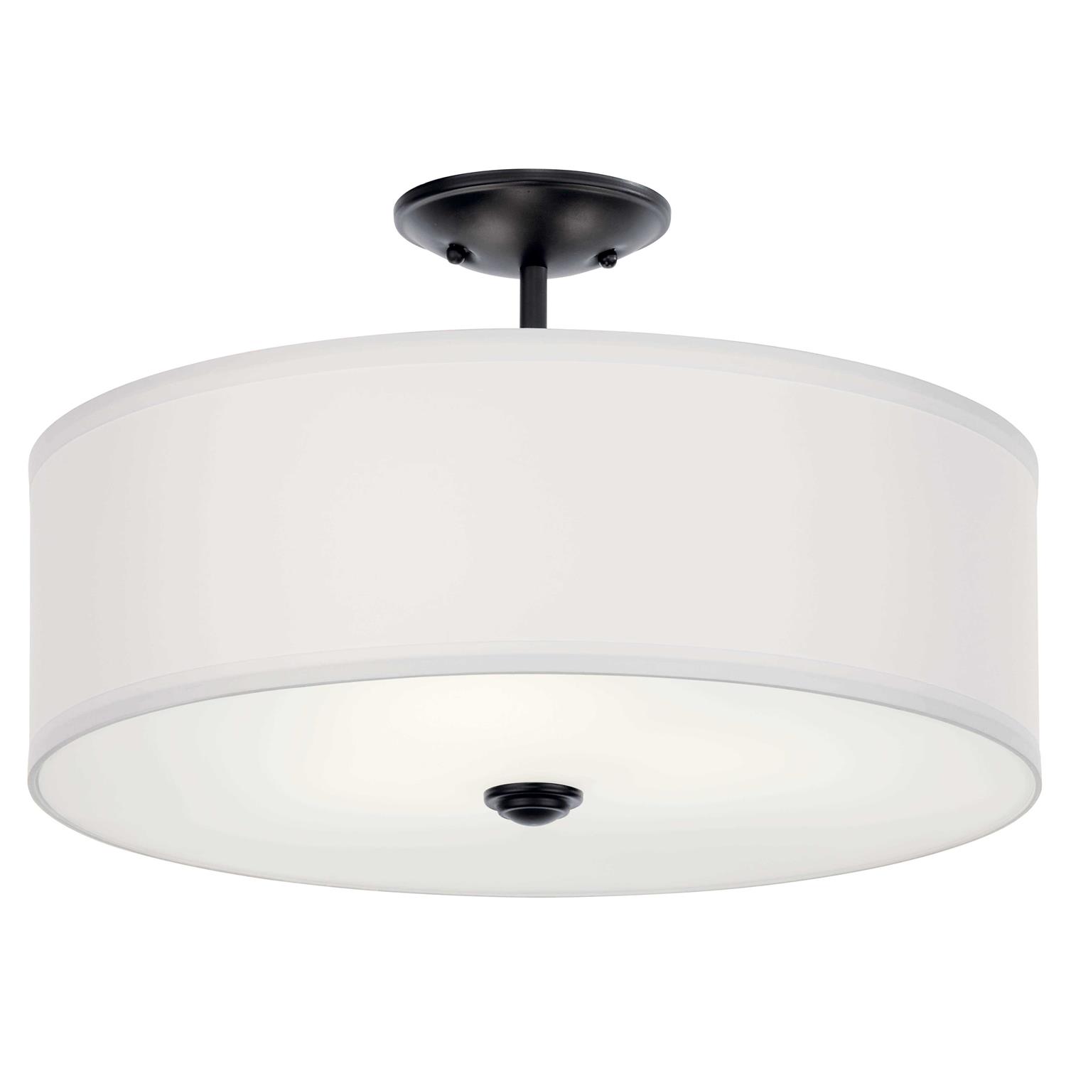 The Shailene 18.25 inch 3 light round semi flush features a classic look with its clean lines in Black finish and satin etched white diffuser and micro fiber shade. The Shailene semi flush works in several aesthetic environments, including traditional and transitional. It’s a beautiful light source in your living space and like a foundation or a canvas upon which to paint a distinctive lighting picture.