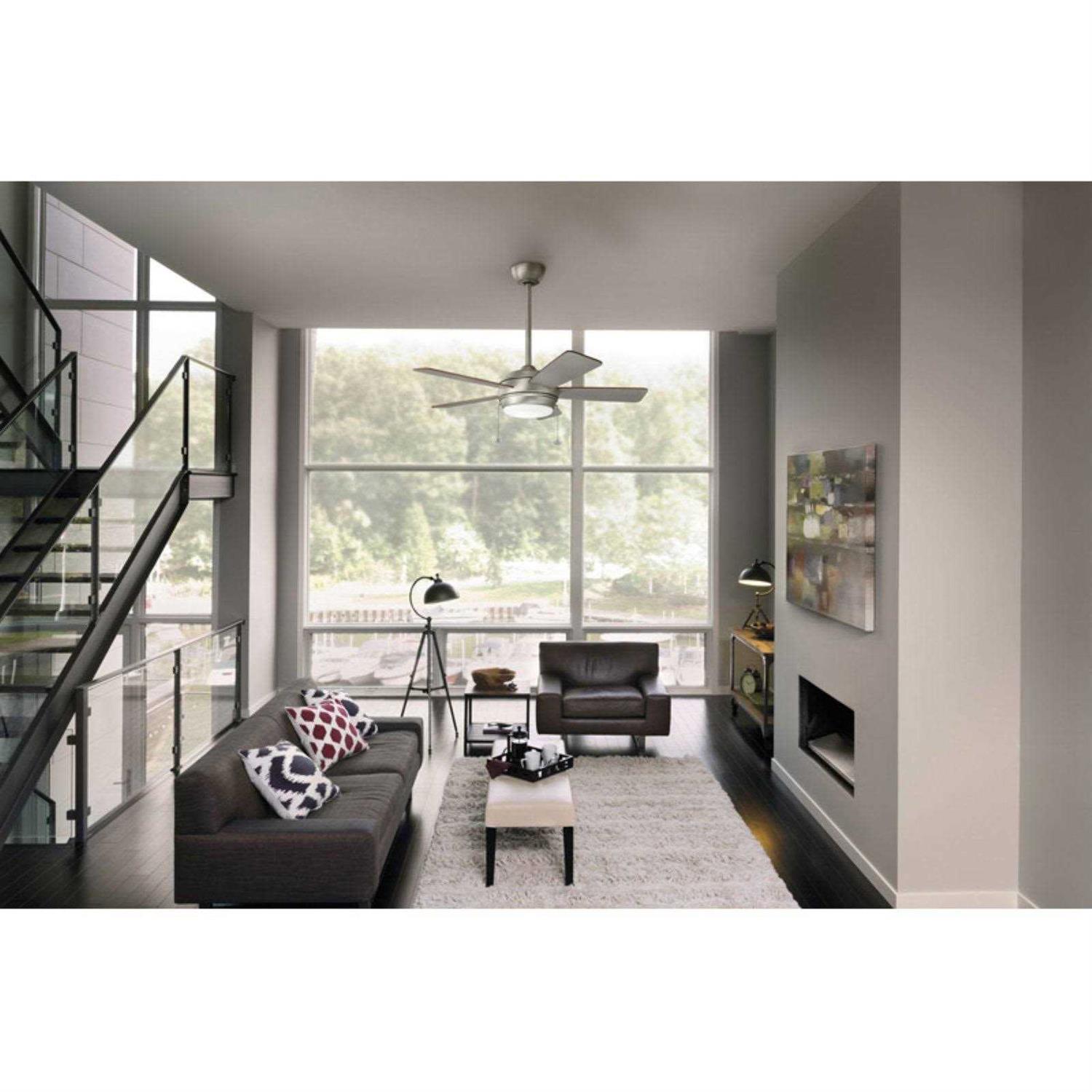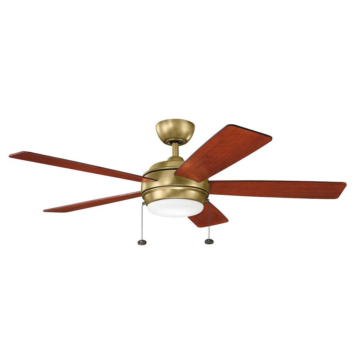 This transitional 52″ Starkk ceiling fan in Natural Brass highlights clean, strong lines making a perfect fit for your décor.