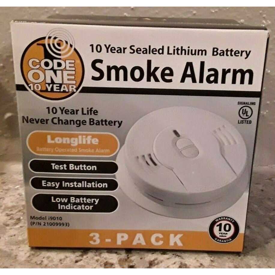The Kidde i9010 is a 10-year, sealed battery operated smoke alarm featuring Hush, Alarm Memory, and a self-activation mechanism that makes installation simple and easy. This package contains 3 Kidde 10 Year Lithium battery alarms in convenient, easy to open box. The alarm will automatically activate when it is attached to the mounting bracket; there are no pull-tabs, no switches–everything is automatic. The sealed-in board-mounted battery will power the i9010 unit for its complete 10-year life. No replacement battery will ever be needed, and an End of Life alert indicates when it is time to replace the alarm. At the end of the alarm’s 10-year life, deactivation of the alarm is just as easy. Using a tool such as a small screwdriver, a deactivation switch removes power from the alarm and renders the battery safe for disposal. As an added safety mechanism, the alarm lockout feature prevents a deactivated unit from being mounted back on the mounting bracket. The i9010 also features Hush technology, allowing consumers to temporarily silence nuisance alarms, and an Alarm Memory feature that alerts the user via rapidly flashing LED lights if the alarm has sounded since the last time the test/reset button was used. This alarm uses ionization sensing technology. Ionization sensing alarms may detect invisible fire particles (associated with flaming fires).