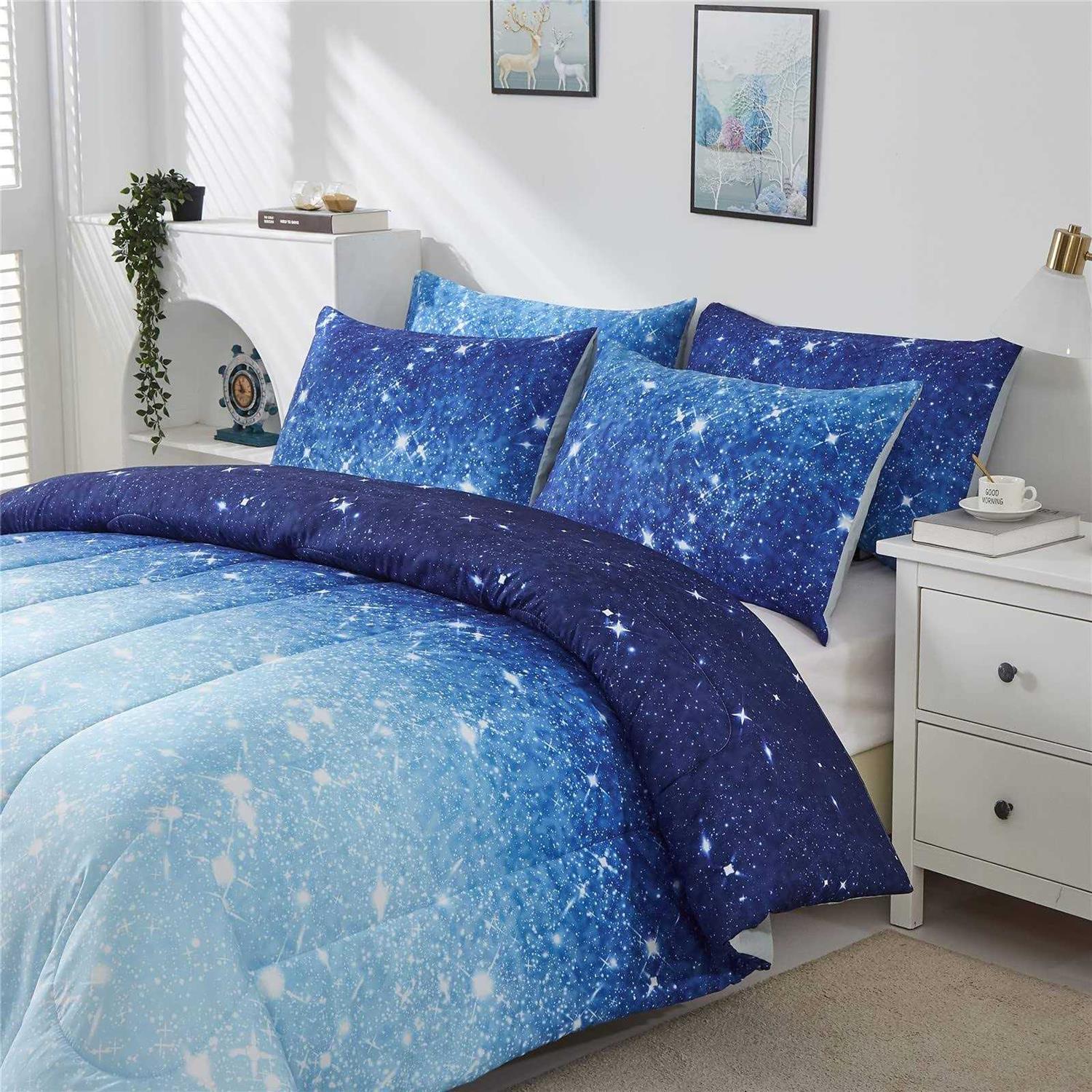 kiddiku Glitter Comforter Set Size Girls Sparkle Galaxy Twinkle Starlight Comforter for Kids Teen