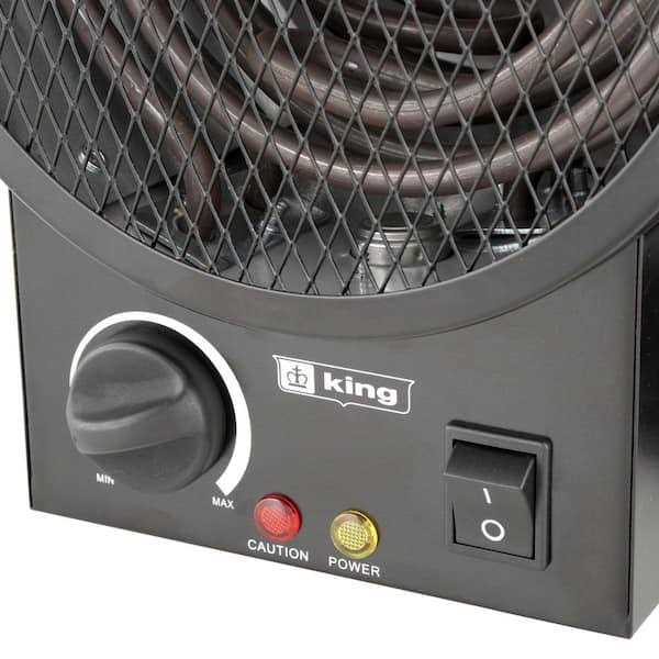 This model comes with a builtin thermostat and a mounting bracket for ceiling or wall installations. This portable heater can serve as a backup heating source in construction sites, garages or workshops. This model provides an overheat protection thanks to a stop highlimit temperature control with autoreset. Its durable finish resists rust, corrosion, and scratches plus, it ensures a longer lifespan. In order to provide a greater mobility, the King Electric PGH2440TB features 6′ power cord and a convenient handle with builtin cord storage. Features: Built-in thermostat (45F – 80F) and On/Off rocker switch. Power indicator light. Auto reset fan delay increases efficiency. Auto reset thermal cutout ensures heater shut-off in an unsafe condition 6′ power cord with 20 Amp plug.