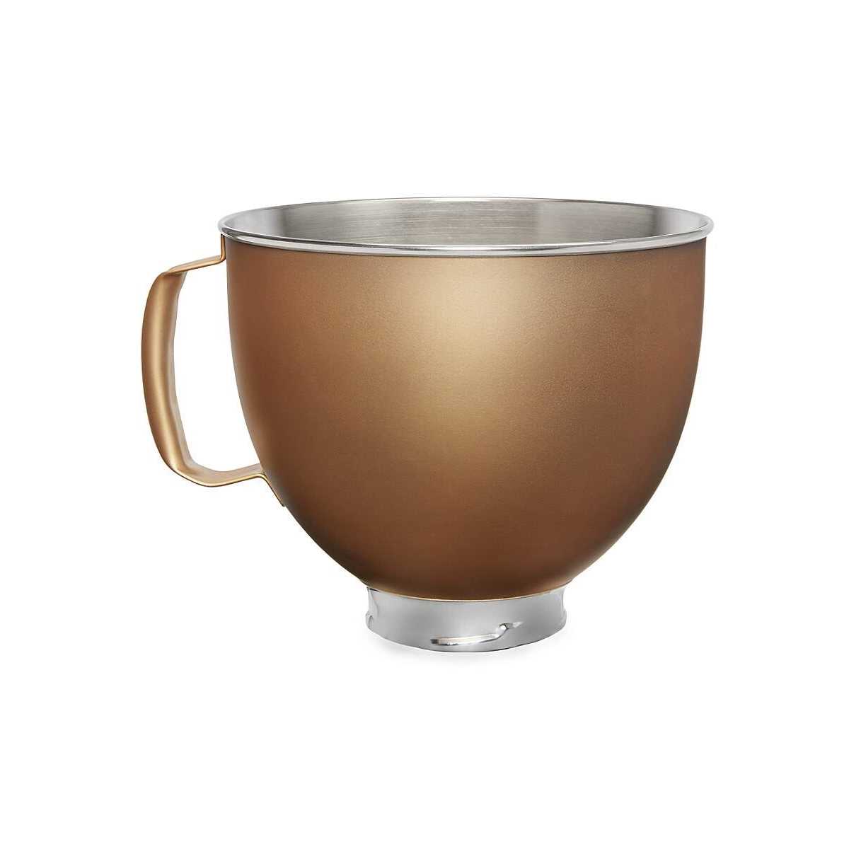Make sure to equip your tilt-head stand mixer with this lovely KitchenAid Gold Stainless Steel Bowl. A great addition to your baking essentials it allows you more flexibility as well as easier work when recipes call for separate mixing of ingredients. With its large 4.8L capacity you are sure to mix big batches of cookies and a generous cake for the party.