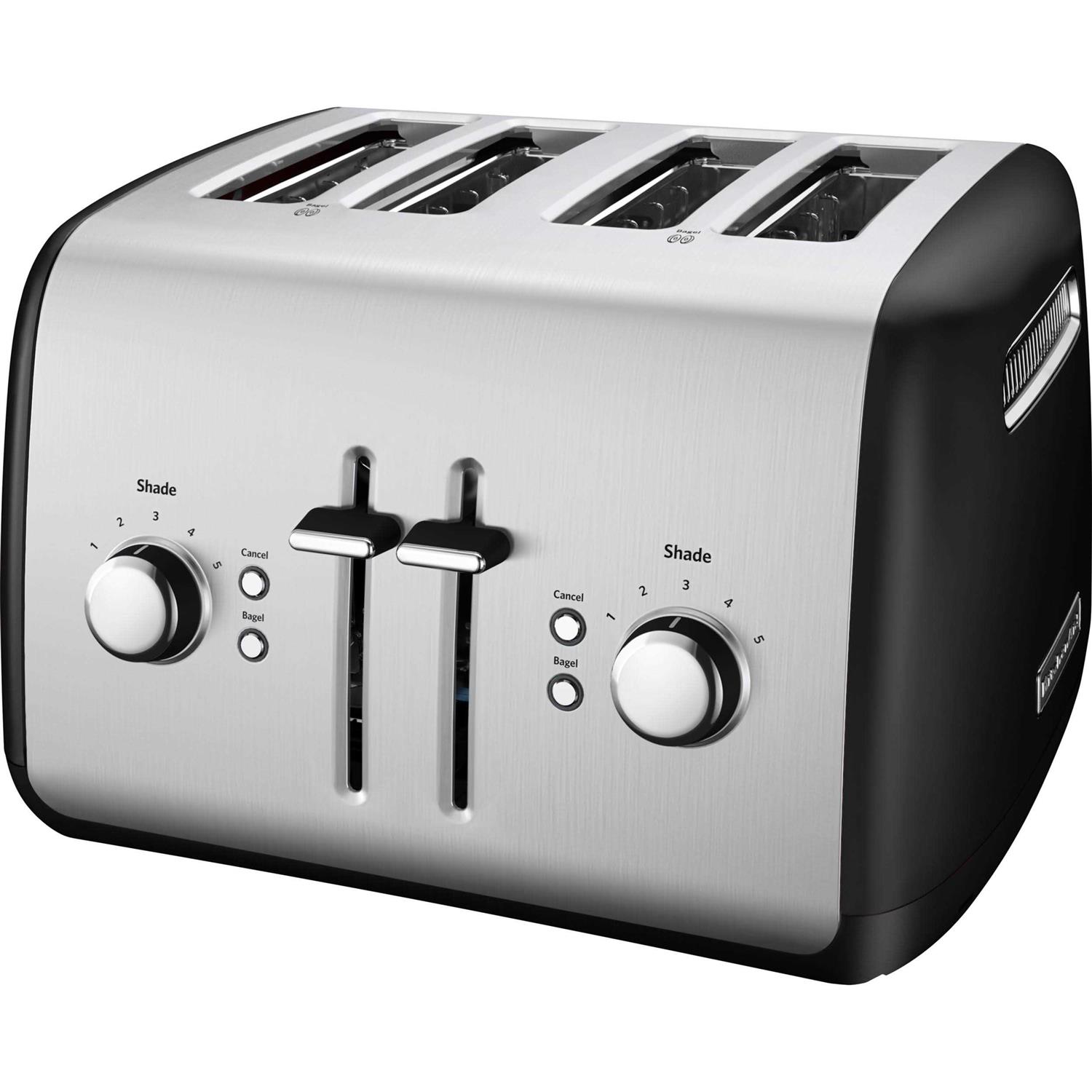 An attractive and functional addition to any countertop, the KitchenAid 4-Slice Toaster offers a variety of functions for everyday use. Toast bread to your desired shade, precisely toast the cut sides of bagels, defrost and toast frozen food or reheat previously toasted food in under a minute. Plus, a high lift lever makes it easy to remove whatever you’re toasting.