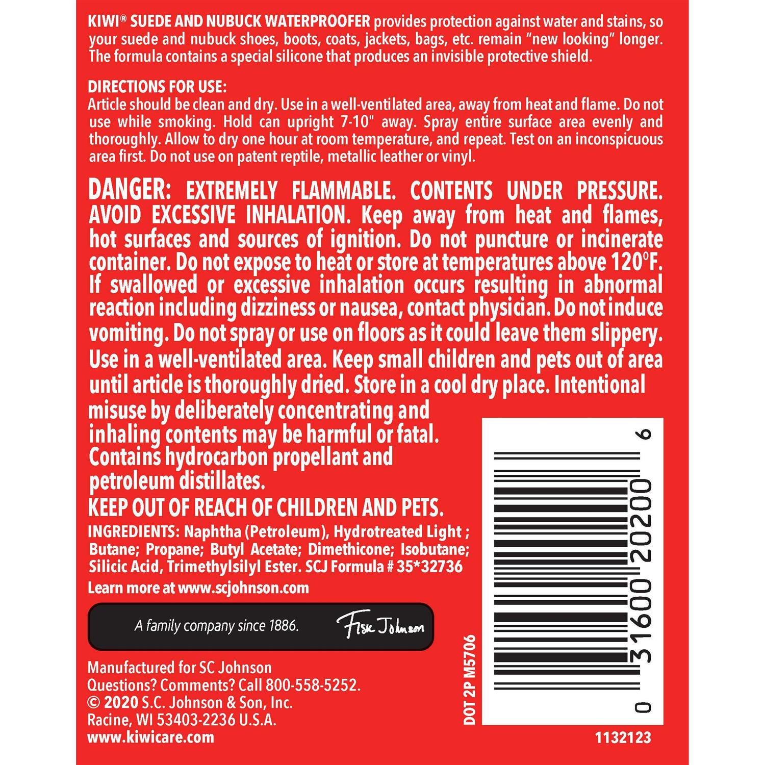 Keep your shoes and other items looking like new with help from Kiwi Suede and Nubuck Waterproofer. It provides a transparent silicone shield for protection against water and stains. This versatile product is suitable for all types and colors of suede and nubuck leather. The aerosol dispenser offers easy, all-over application. This waterproofer spray for shoes is also useful on just about any suede and nubuck leather item, including boots, jackets and bags.