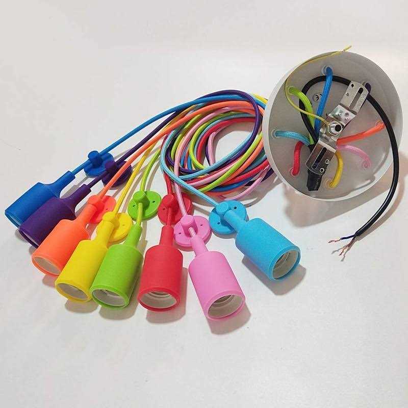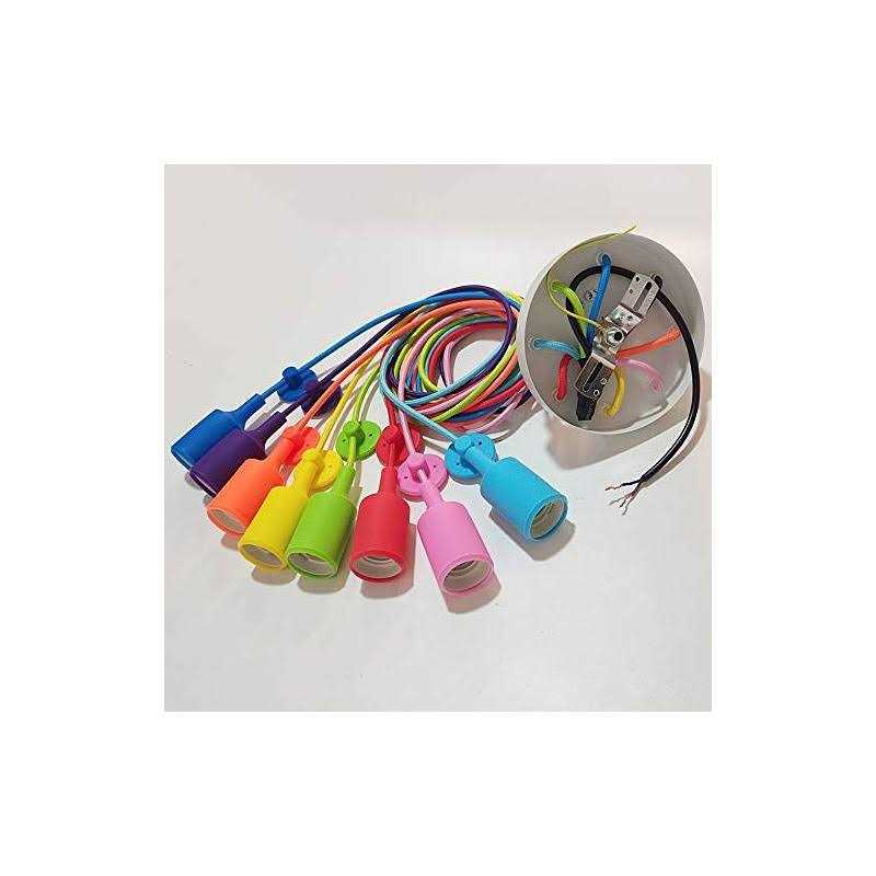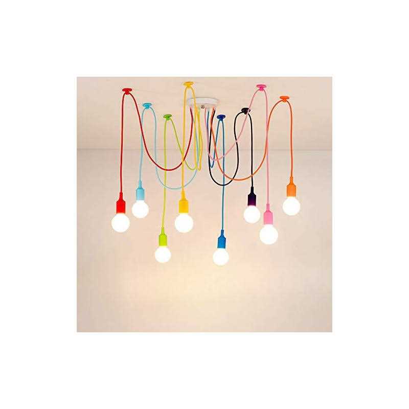 Size: **8 Lights** **Features:** Modern colorful design. Not only lighting but also decoration for your space. Creates warmth graceful atmosphere perfectly suitable for your decoration requirements. When you complete the installation, you will see a amazing effect. **Product Specification:** Style: Contemporary Chandelier Brand: **KJLARS** Number of Heads: 8 Base Type: E26 Light Source: 8 * E26 bulbs(Not included) Suggested Room Size: 15-30m2 Dimension: Cable Length 59” / 150cm Finish Color: Colorful Material: Silica gel Voltage: 110V – 130V **** **Please Note:** For installation safety, please power off before you install it. Before hanging, make sure the screws are tightened. For your safety, please make sure that no one is below the ceiling light when hanging. **_