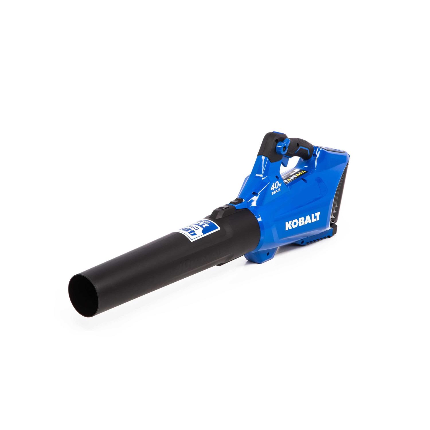Kobalt 40-volt cordless axial blower provides the power you need with up to 40 minutes of runtime on a fully charged 3.0 Ah battery (battery and charger sold separately). Variable-speed trigger lets you deliver just the right amount of power, while convenient turbo button lets you amp up the power when needed. Cruise control feature lets you select constant power for longer stretches. Just under 10 pounds the lightweight design makes it easy to handle, while the axial fan engine delivers ample power and performance.