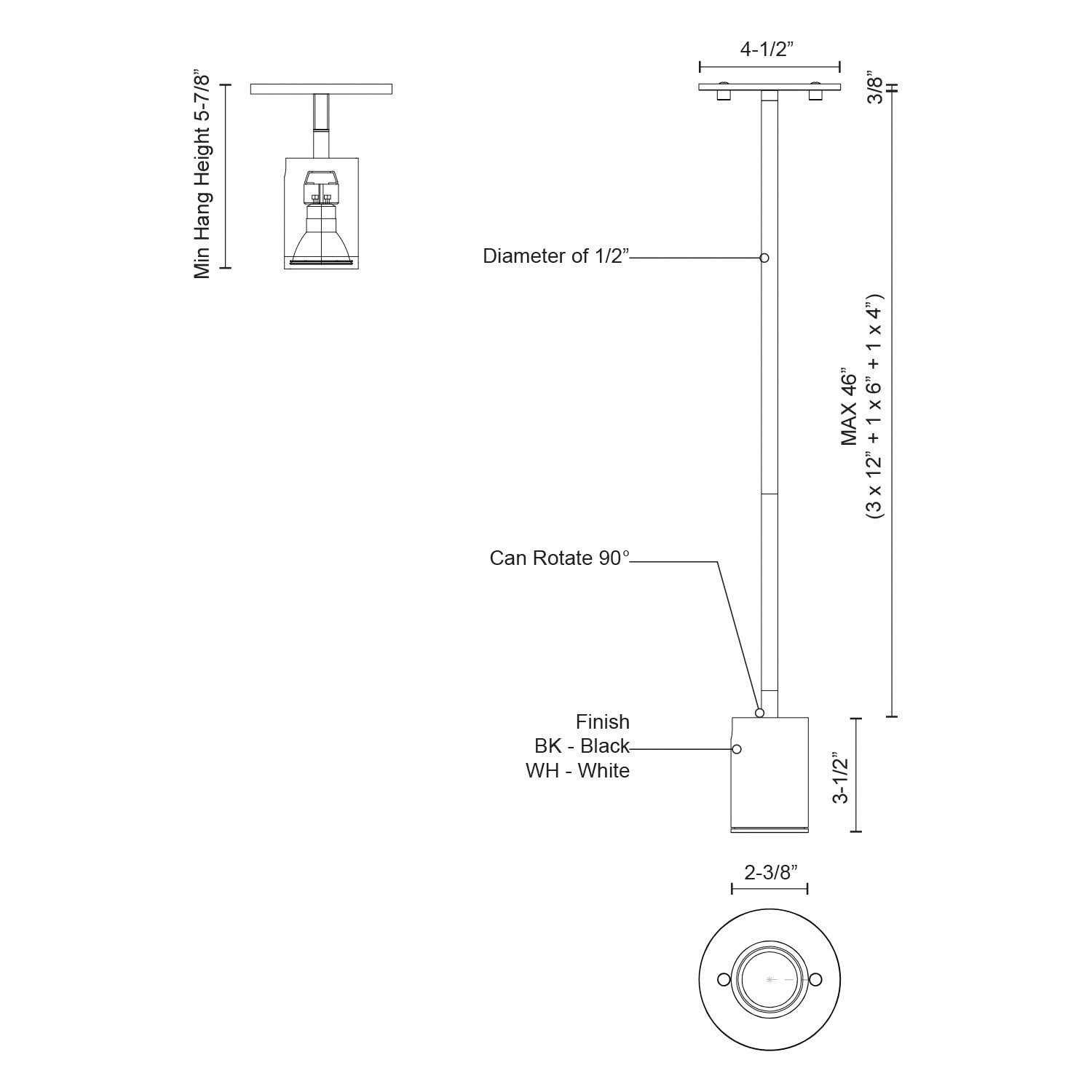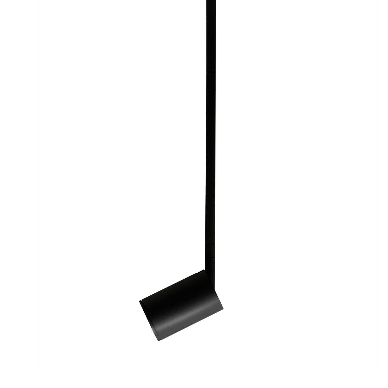 Cylindrical lamp head with recessed bulb socket. Circular attachment plate with vertical stem. Powder-coat finish. Adjustable directional light (90 Degrees).