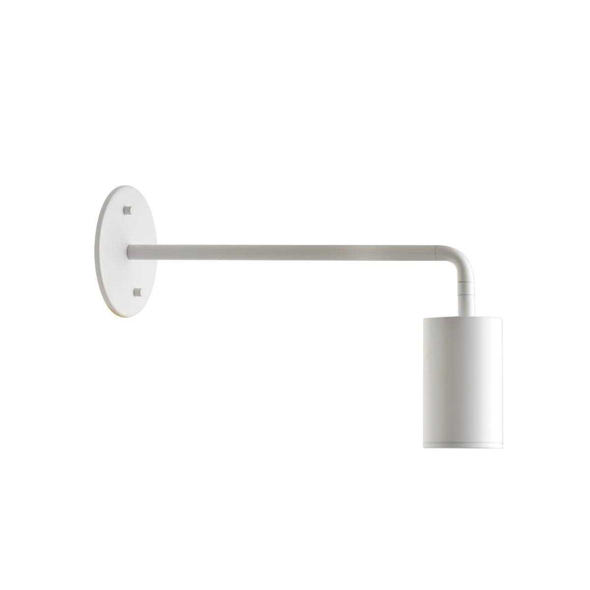 Cylindrical lamp head with recessed bulb socket. Circular attachment plate with vertical stem. Powder-coat finish. Adjustable directional light (90 Degrees).