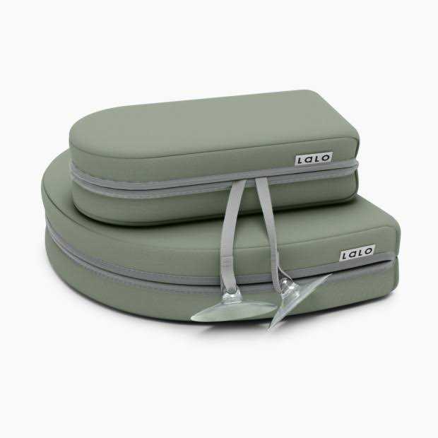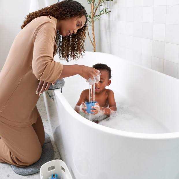 This two-piece set is designed for elbow and knee comfort while washing and playing during bathtime. The elbow cushion suctions to the tub for easy cleaning, while the knee cushion protects your joints. When bathtime is over, they fold away for easy storage.