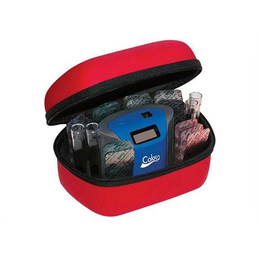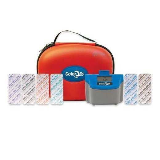 Awarded one of the “Most Valuable Products for 2008!” by Aquatics InternationalNo color matching no look up charts no guessing! The unique multi-test ColorQ pool and spa hand-held photometer reads SEVEN test factors (Free Chlorine Total Chlorine Bromine pH Alkalinity Calcium Hardness and Cyanuric Acid) directly on a digital display. Featuring an innovative dual-optic design the ColorQ provides more accuracy and more test factors. The ColorQ eliminates the need to visually determine slight color variations or use look-up tables thus taking the guesswork out of pool side water analysis.