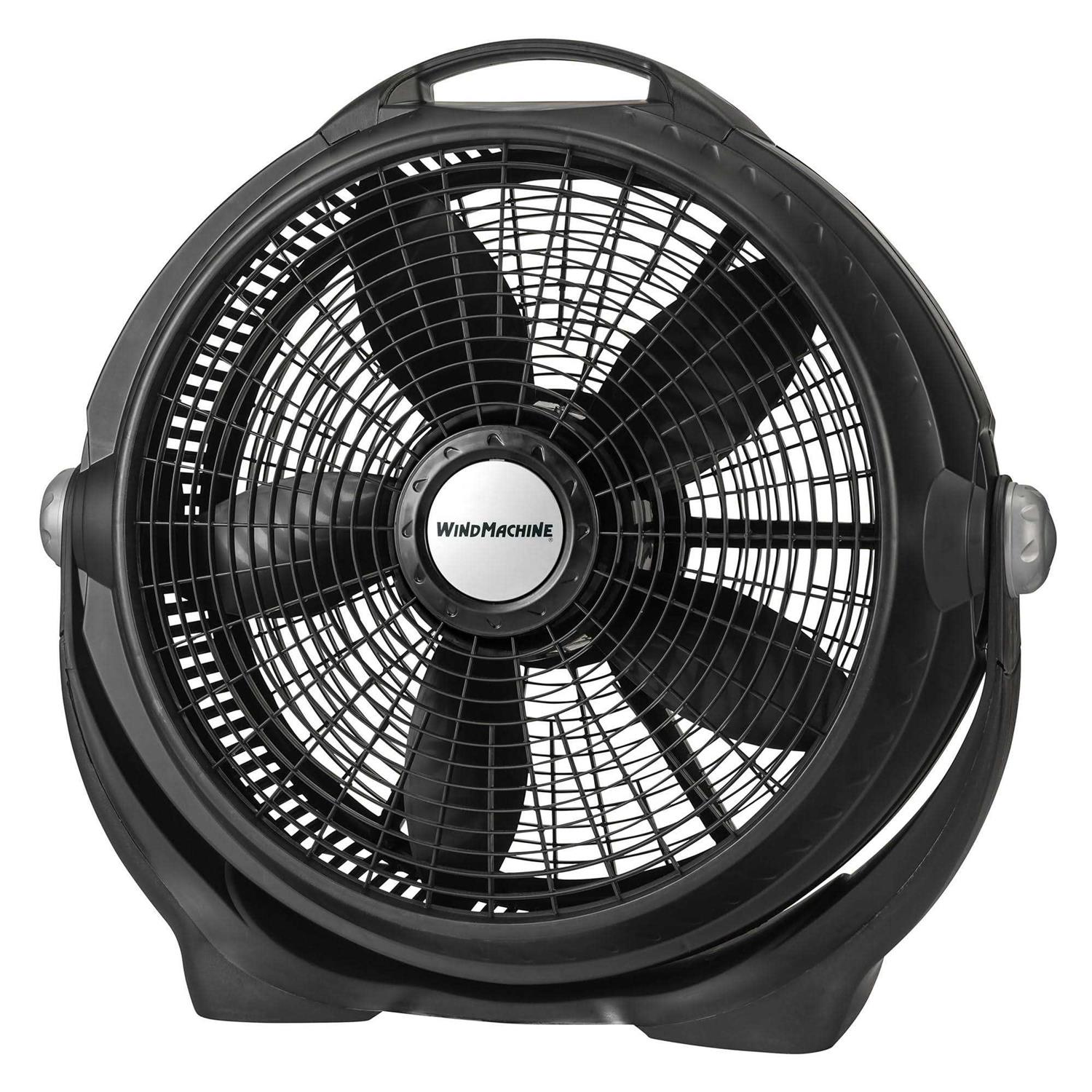 The Lasko 20 inch Wind Machine, in black, lets you enjoy a cooling breeze in larger spaces and rooms. Ideal for powerfully circulating air, this high performance portable fan offers 3 speeds and a pivoting head so you can set it to the speed and angle you desire. You can even place it directly in front of air conditioning vent to quickly circulate air conditioning and boost your chill factor. This portable fan features a built-in, easy-grip handle so it’s simple to transport around your home, business or job site. Durable plastic construction makes it lightweight and immune to rust so you can use it in humid conditions. Equipped with trusted, Blue Plug safety fuse technology, making this fan a safe and an energy-efficient choice.