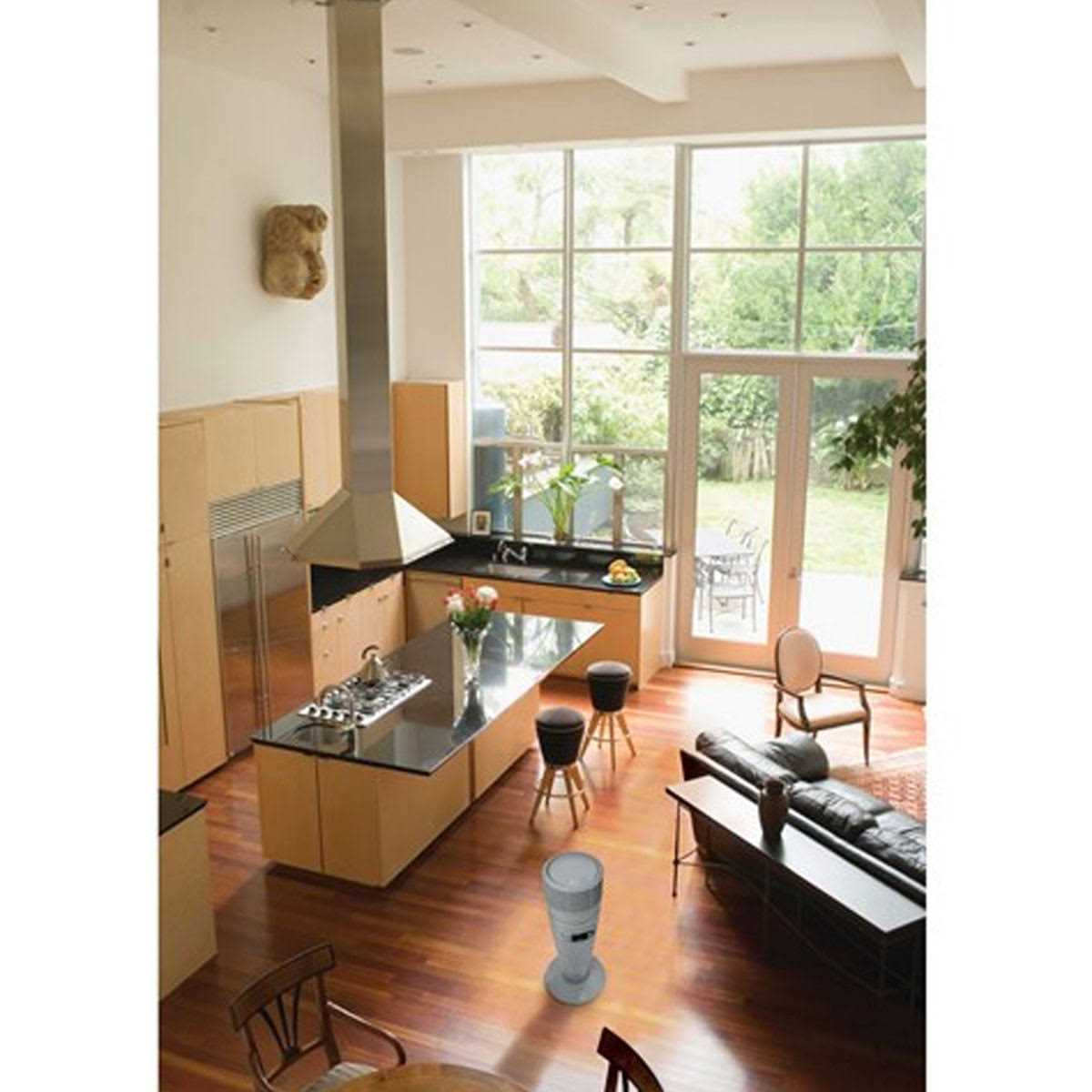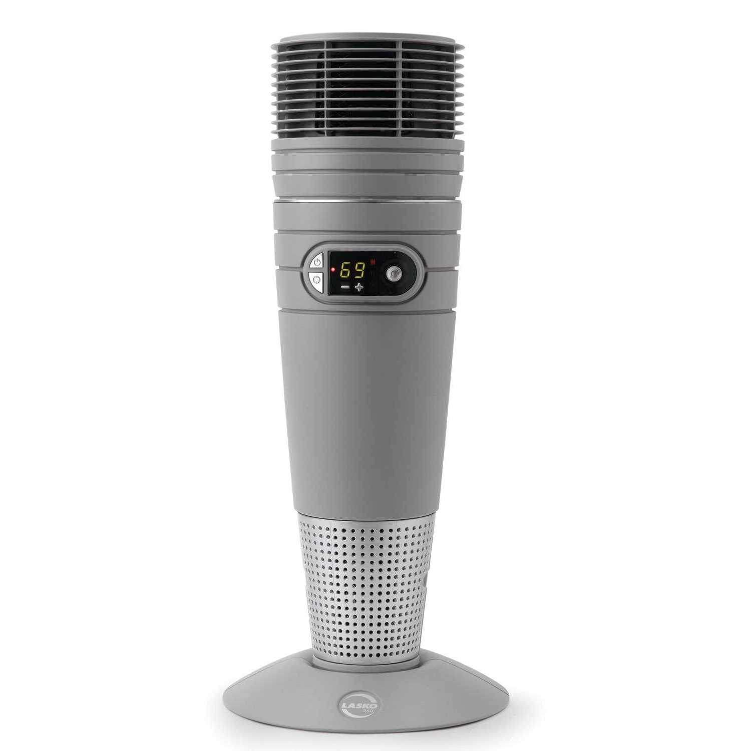 25-in full-circle warmth ceramic heater projects warmth all the way around the room. 3 heat-sweep settings include 90 heat-sweep 170 heat-sweep and 360 full circle warmth. 2 quiet heat settings and automatic thermostat control. Easy-to-read digital thermostat. Multi-function remote control operates heater from across the room. Self-regulating ceramic heating element with automatic overheat protection. Features easy-to-clean filter. Simple stand assembly required. Package includes heater remote control 2 AAA batteries manual and warranty.