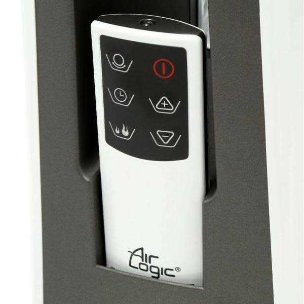 Lasko Air Logic 21″ Bladeless tower heater offers two heat settings and comes with remote control. Heater includes EZClick filter that helps to keep it free from debris.. Output power: 1500 W.Two heat settings. – Remote control with convenient storage in rear pocket (batteries included). Dimensions: 21.17″(H) x 8.10″(W) x 9.16″(L). Working area: 300 sq. ft. – Power/fuel type: Electric. – Cord length: 72″, voltage: 120 V.Material: Plastic. – Heating technology type: Convection, heater type: Ceramic. – Indoor/outdoor: Indoor. – EZtouch controls for added convenience, automatic thermostat, 8 hrs timer. – Enhanced safety, safe-touch surfaces, automatic shut-off, tip-over safety switch, widespread oscillation. – Exclusive heat channels to blend air with heat to deliver quick, uniform and long range comfort with less noise. – Bladeless heater with enhanced safety features. – EZClick filter is easy-to vacuum and extends the life of the heater. – Fully assembled. – Includes: Digital EZtouch controls and digital display. – Certifications and standards: E.T.L. listed. – Lasko Air Logic 21″ Bladeless tower heater is safe for the active home environment with its secure touch surface and includes 8 hrs automatic shut off timer.