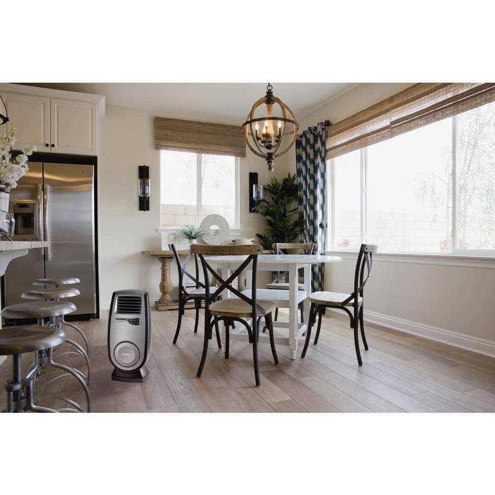 The Whole Room Ceramic Heater features four-way heat circulation to warm your entire room. With Save Smart Technology, you can set the automatic thermostat to maintain comfort while using less energy. Power controlled louvers plus side-to-side oscillation create “3-D heat waves” to warm your space evenly and efficiently. Features 8-hour timer, tip-over safety shutoff switch, overheat protection and wireless remote.