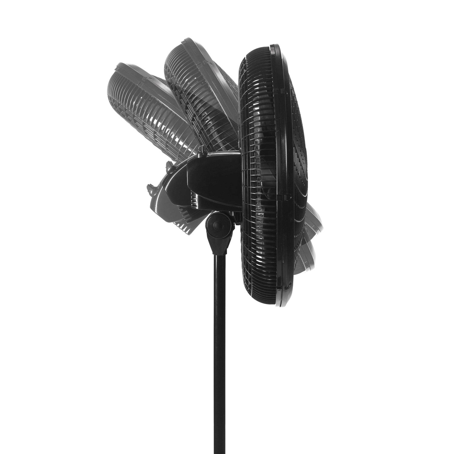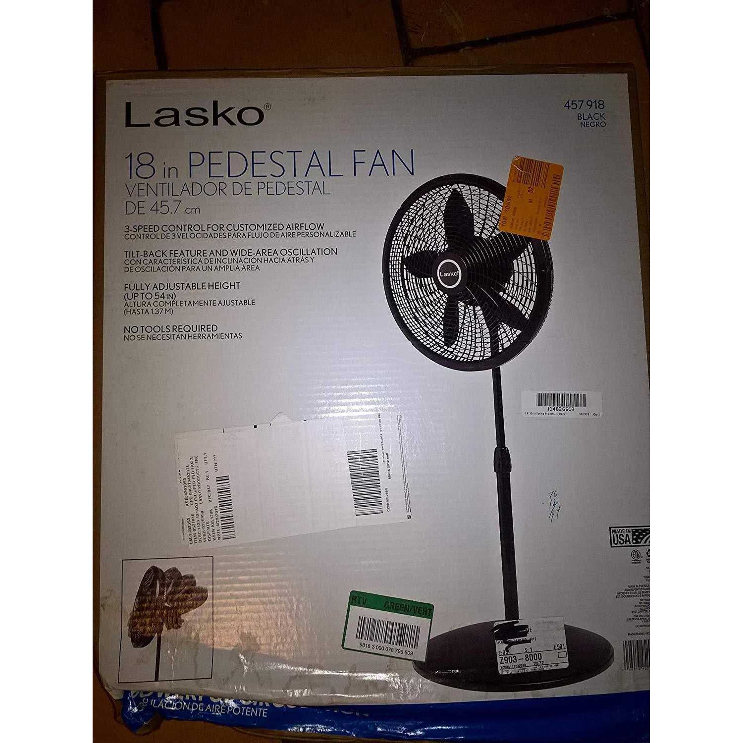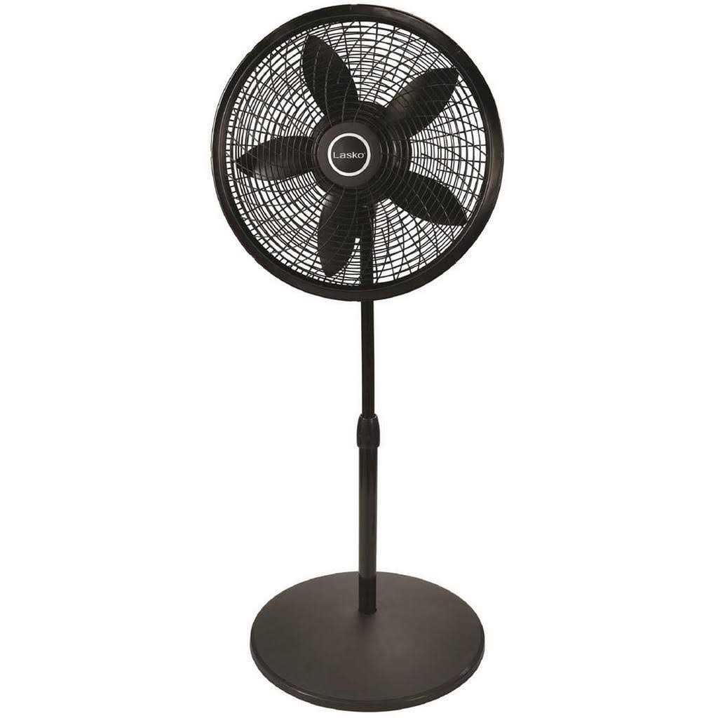 The Lasko Cyclone Large Room Pedestal Fan offers powerful and stylish cooling with its sleek black finish and multiple options for use. The height-adjustable fan gives you the control to direct air circulation and flow to optimize your comfort, adjusting to meet your needs with effortless operation. The optional oscillation and tilt-back fan head allow you to easily make adjustments to customize your comfort level. This stand fan has an 18-inch blade, and is designed to provide maximum airflow for even the largest home spaces with its swirling cyclone grill and 3 quiet and energy-efficient speeds.