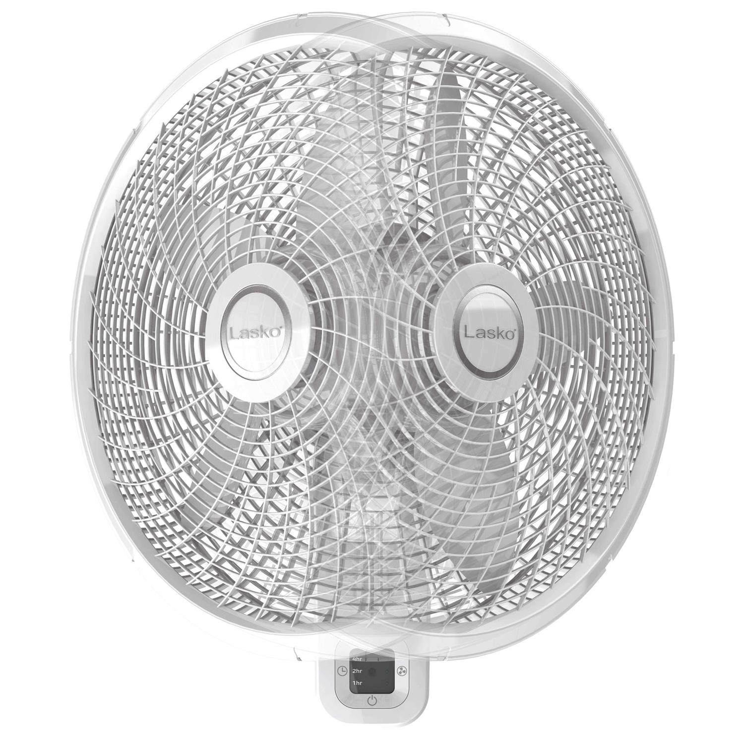 Engineered to resist rust and corrosion, this 18? wall-mount fan from Lasko is built to last. The Lasko 18? Oscillating Wall-Mount Fan with Remote features three quiet speeds, T-hour timer, easy electronic controls and a multi-function remote. This fan is great for rooms where space is at a premium!