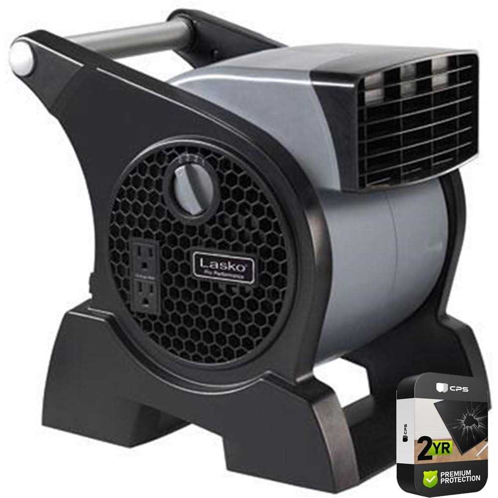 Lasko Pro-Performance High velocity Utility Fan features a multi-purpose, pivoting blower – making it ideal for moving air in garages, workshops, work sites, and for floor and carpet drying. Product Features: Multi-purpose pivoting utility fan High velocity air stream with three speeds Two integrated 120-volt accessory outlets Easy-grip handle for project-to-project mobility Circuit breaker with reset button Easy-carry handle Three-prong grounded plug Fully assembled Specifications: Dimensions (W x H x D): 14.5 x 14.75 x 11.5 inches Weight: 13.5 pounds Color: Black/Grey