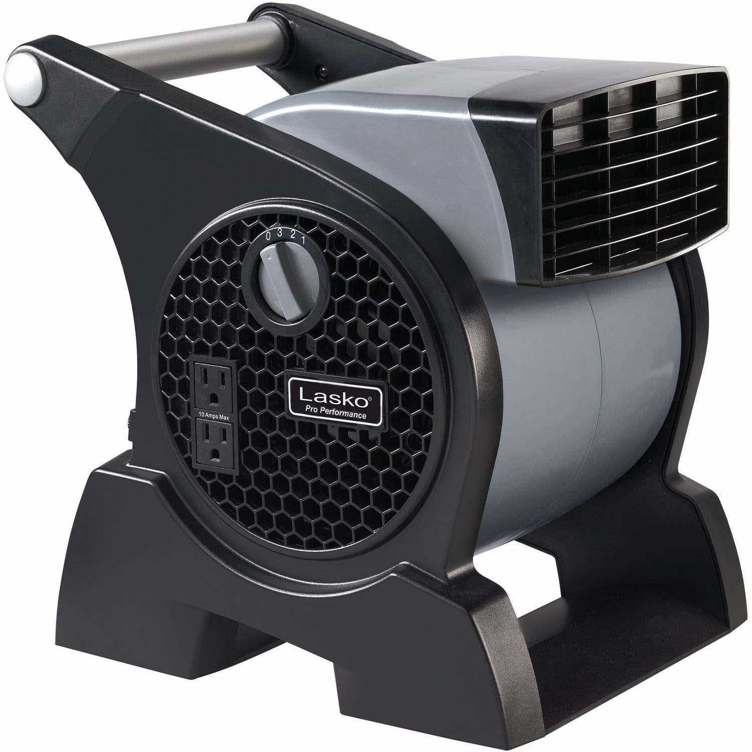Get the job done right with the Lasko Pro-Performance High Velocity Utility 3-Speed Fan. It features a multi-purpose pivoting blower, making it ideal for moving air in garages, workshops, work sites and floor and carpet drying. The high velocity airstream is great for cooling, ventilating, exhausting and drying, and features three performance speeds for customized air flow. This multi-purpose pivoting Utility Fan has a 10-foot cord that helps to get the air where you need it. It also comes with two 120V accessory outlets on the side with a circuit breaker to allow multiple units to be used in a chain. It features an easy-grip handle that allows for convenient and comfortable use and transportation. The Pro-Performance High Velocity Utility Fan comes fully assembled, is easy to setup and does not require tools, and is ETL listed.Lasko has been engineering and building great-looking, high performance home comfort products in the U.S. and around the world for more than 100 years. The company has grown to an international organization and market leader in portable fans and ceramic heaters including room fans, high velocity fans, ceramic, low-profile heaters and many more.