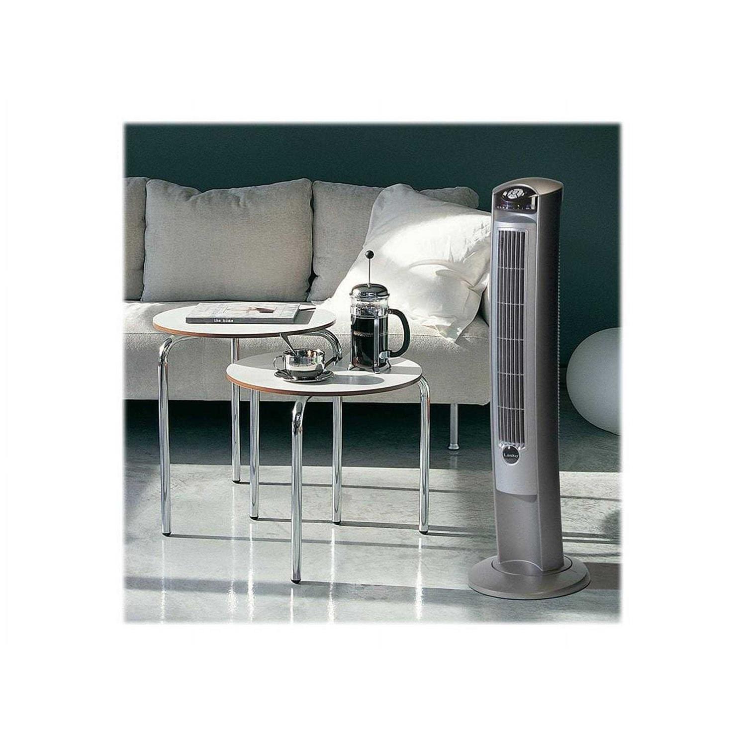 Wind Curve Platinum Tower Fan with Remote Control & Fresh Air Ionizer Profile Help Lasko 2551 Wind Curve Platinum Tower Fan With Remote Control and Fresh Air Ionizer 3-speed oscillating tower fan Wind Curve profile and 42.5″ height help maximize air distribution Energy-saving timer offers auto shut-off up to 7-1/2 hours ETL listed, patented, fused safety plug Easy carry handle and remote control storage on the back Lasko 2551 Wind Curve Platinum Tower Fan With Remote Control and Fresh Air Ionizer.
