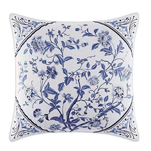 Laura Ashley’s Charlotte Comforter proves the timeless appeal of blue and white porcelain for a 21st century style bedroom. The centerpiece of the collection is a beautiful garden floral print that appears on the standard shams and comforter where it is framed by an intricate double border pieced on the outer edges. 100% Cotton, Fill is 100% Polyester. Machine wash cold on delicate cycle. Tumble dry low. Use extra large capacity machines. Re-position during drying cycle. Do not iron. Do not dry clean. Twin set includes 1 flat sheet measuring 96 x 66, a fitted sheet that measures 75 x 39 x 14, and 1 pillowcase that measures 20 x 30. Full set includes 1 flat sheet measuring 96 x 81, a fitted sheet measuring 75 x 54 x 15, and 2 pillow cases each measuring 20 x 30. Queen set includes 1 flat sheet measuring 102 x 90, a fitted sheeting measuring 80 x 60 x 15, and two pillow cases each measuring 20 x 30. King set includes 1 flat sheet measuring 102 x 108, a flat sheet measuring 80 x 78 x 15, and two pillow cases measuring 20 x 40.