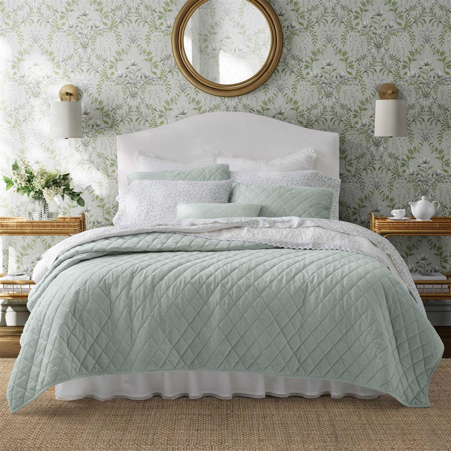 Laura Ashley Diamond Stitch Velvet Quilt Set
