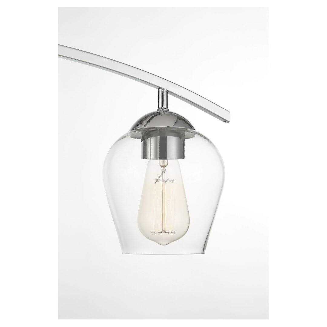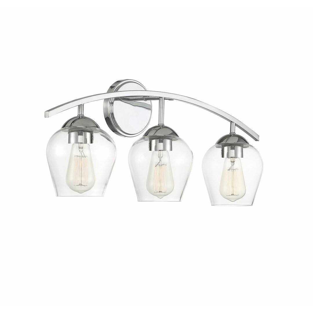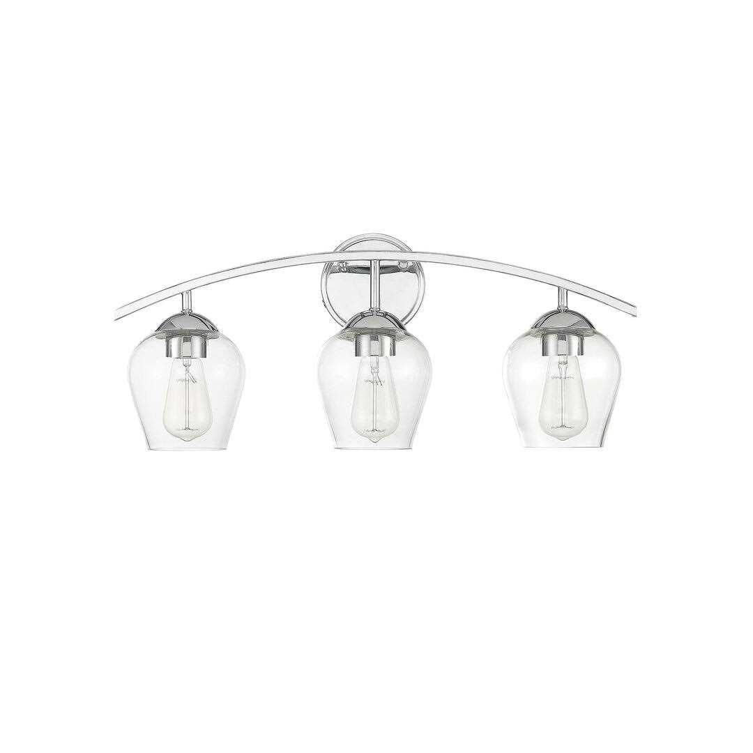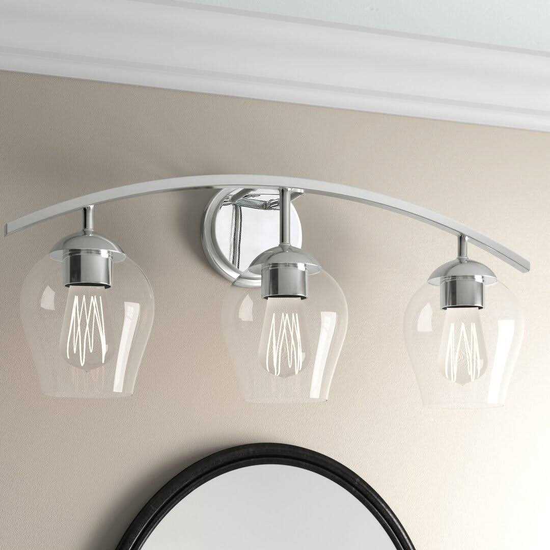 The sleek arch and shiny finish on this 3-light vanity light freshens up the look of your main bathroom or guest bath in modern style. Its frame is crafted from stainless steel and it has a round backplate and a short rod with a reversible mounting design. The rod features a curving arm with three downrods that hold clear dome-shaped glass shades. Each shade accommodates one medium-base bulb up to which is not included that aims ambient light up or down.