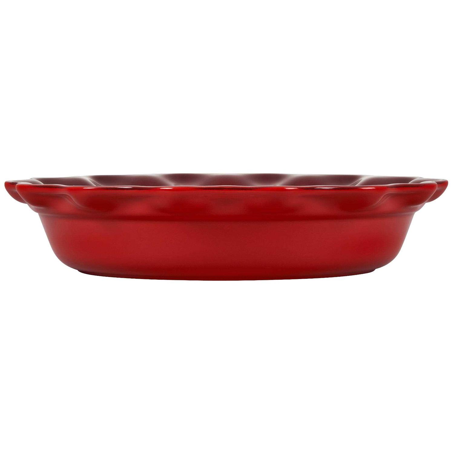 Recognized for its strength and durability, as well as its beauty and quality, Le Creuset produced the first enameled cast iron cookware nearly a century ago. A tradition of maintaining the finest culinary craftsmanship, combined with the latest innovations, means Le Creuset is known for blending classic form with real function and that it’s made for home cooks and professional chefs alike. The Heritage Pie Dish in Sea Salt is designed for performance and beauty from oven to table. Premium stoneware distributes heat evenly for perfectly golden brown flaky crusts, and the colorful glaze is scratch-resistant and virtually nonstick for easy cleanup. The attractive dimpled edge lends the perfect finishing touch when baking pies, quiche and breads. Product Details Stoneware. Safe for freezer, microwave, oven, broiler. Made in China. Care Instructions Dishwasher safe. Size & Fit 9″ Diameter x 2″ H, 1.5 qt.