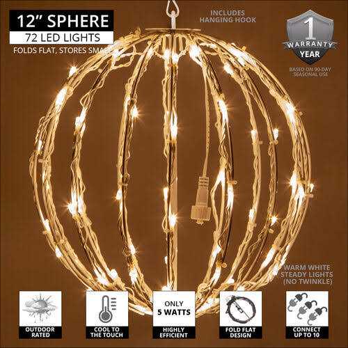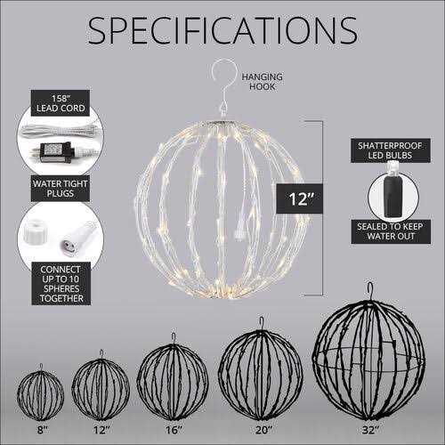 Quick to set up and store, this LED Light Ball’s fold-flat brown frame and 158-inch lead cord make decorating effortless! It’s perfect for both indoor and outdoor decorations, ideal for filling with flowers, greenery, ribbon, and more! Plus, its long-lasting, twist-proof LED bulbs ensure reliability, while its fused male plug and end-to-end female plug provide easy connection to power.