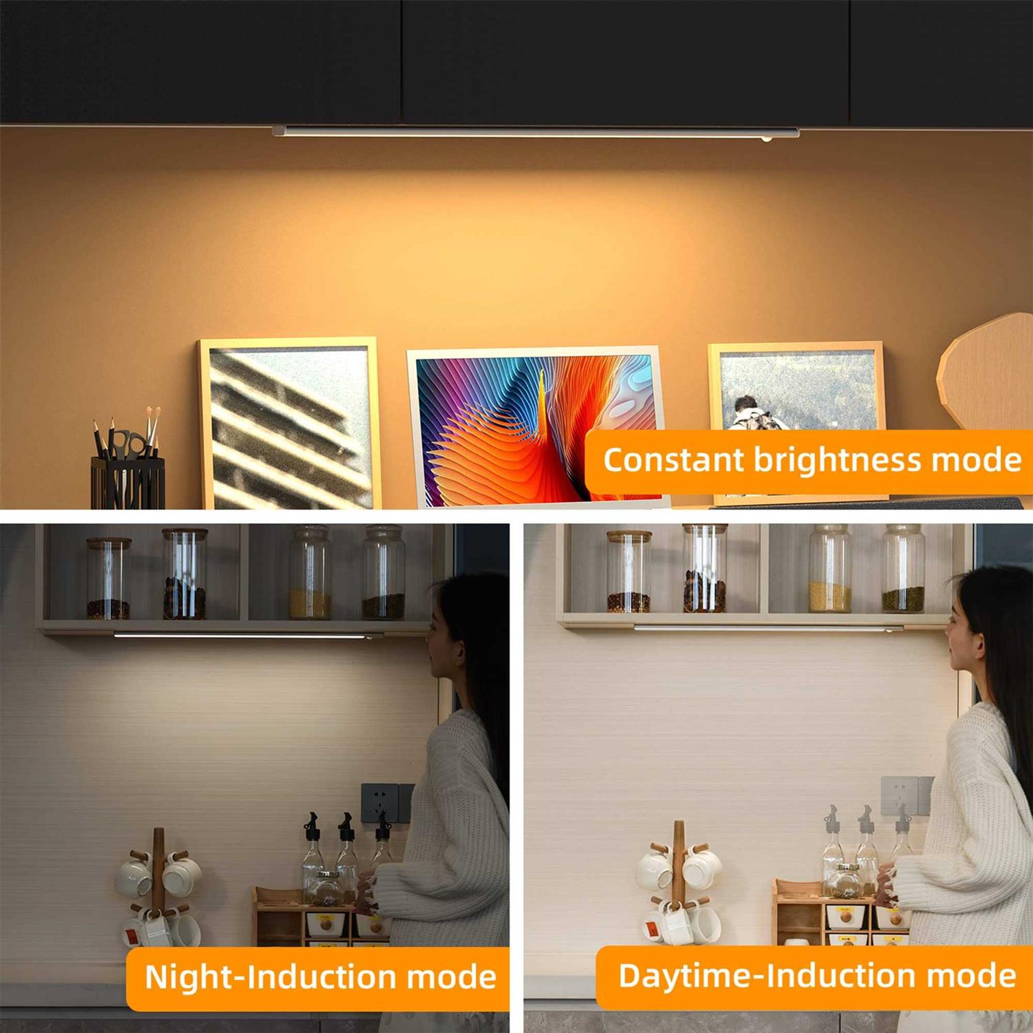 【Brighter Lighting】- Cupboard light has 75 built-in LEDs, the light brightness is 100 lumens, the anti-glare technology is used to make the light softer, brighter and non-glare, creating a comfortable environment for your family. 【3 Working Modes Adjustable】- Cabinet light has 3 mode switches (ON-OFF-AUTO). In a dark environment, set the light to AUTO mode, the motion sensor can detect human motion within 10 ft/110°, turn off after 25 seconds of no motion. If you need to use it in a bright environment, just turn on the “ON” mode. 【Battery Capacity】- The built-in 1500mAh high-capacity rechargeable battery, the closet lights can in the “ON” mode for 6 hours, in the “AUTO” mode for 10 weeks(triggers 10 times per day), recharging takes only 4 hours. 【Easy to Install】- With built-in magnets can attach the LED light strip to any ironwork, or use the magnetic patch included in the accessory to mount the light to any smooth, clean surface; you just need to take the light when you charging or need to change the mounting location. 【Wide Application】- Under cabinet wireless lights is suitable for bedrooms, drawers, cabinets, hallways, stairwells and other places. Specifications: /b br LED Type: 42pcs/75pcs/92pcs br Sensor: Motion Sensor br Color Temperature:4000K br 3 Modes: ON/OFF/AUTO(Motion Sensing) br LED Brightness: 100 lumens(±10%)/145 lumens(±10%)/160 lumens(±10%) br LED Life: 20000 hours br Induction Distance: 3m/10ft br Influence Angle: 110°(±10%) br Battery Capacity: 1000mAh/1500mAh/2200mAh Lithium battery br br Packing List /b br 1 X LED Motion Sensor Light br 2 X Iron Shee br 2 X Double Side Adhesive Tape br 1 X 12 inch Type-C USB Charging Cable br 1 X User Manual br br