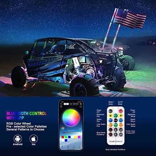 LED Whip Lights for UTV RGB Chasing/Dancing Light Remote Control APP-Supported