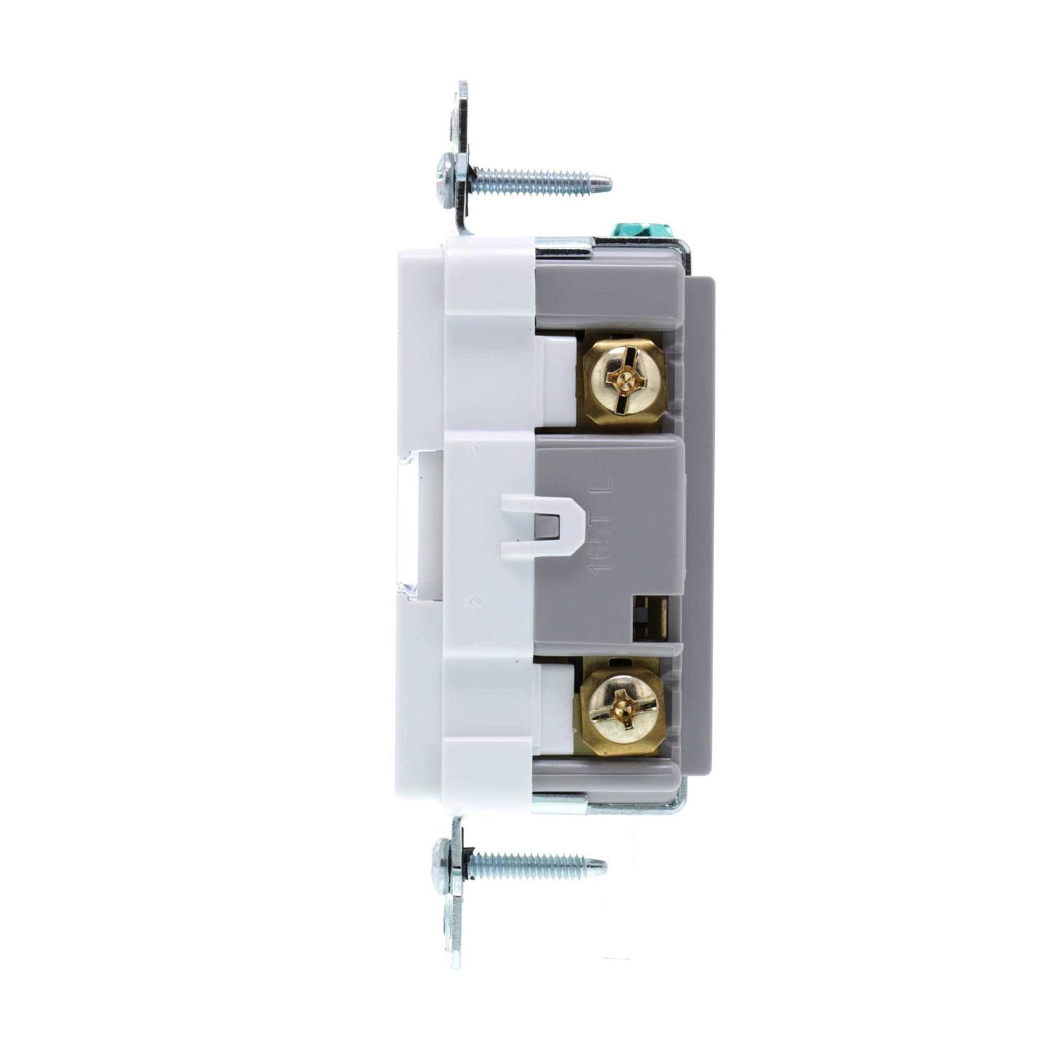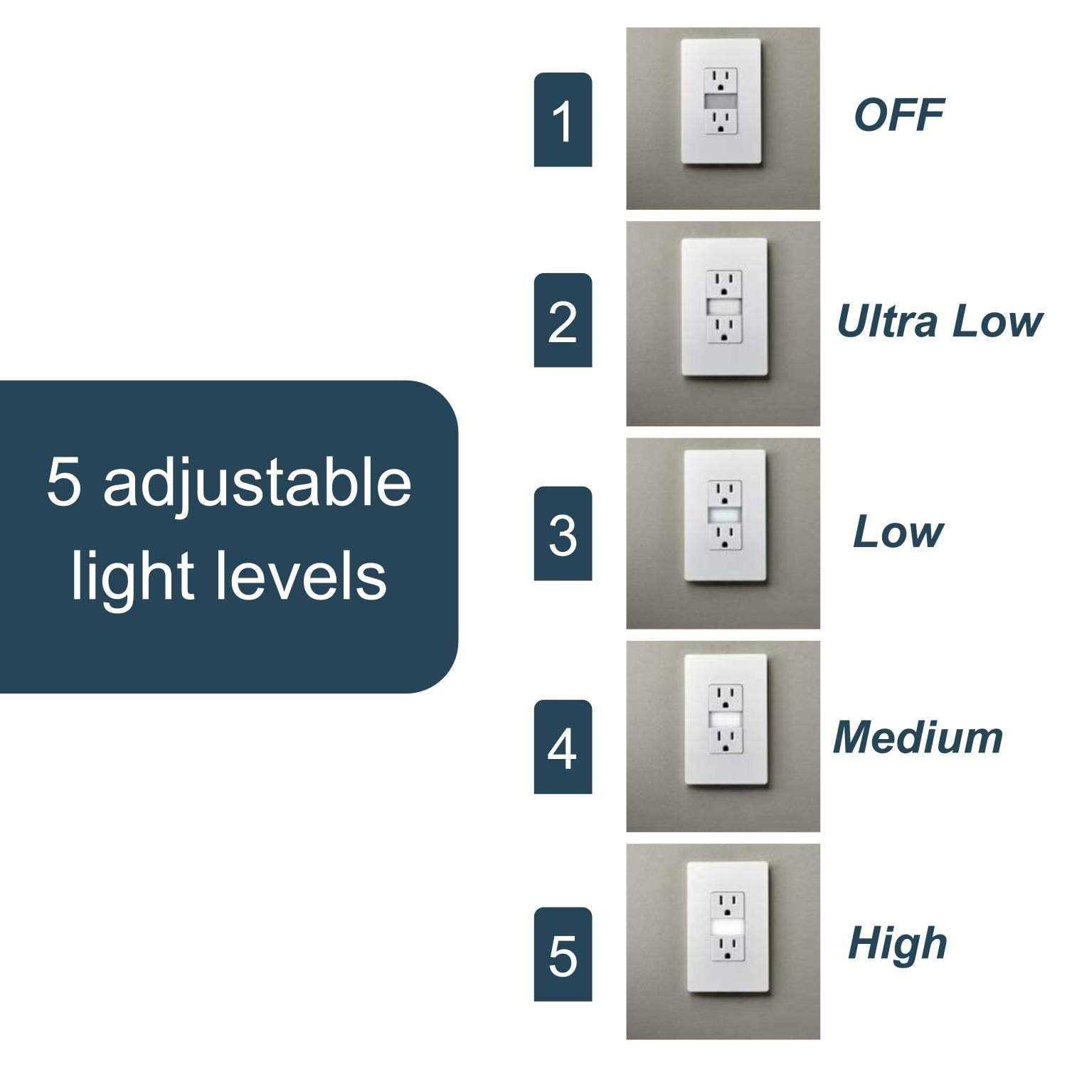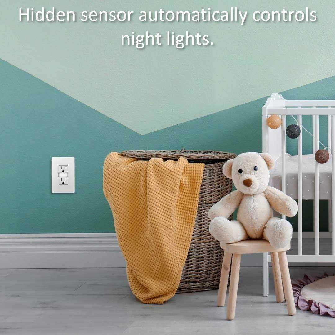 Perfect for adding a little light just where you need it, without sacrificing an outlet or dealing with unattractive plug-in models, this built-in night light from the radiant Collection comes combined with a tamper-resistant outlet. A great upgrade for hallways and kids’ bedrooms, it installs easily in place of a standard outlet and automatically comes on in the dark. With five adjustable light levels, you can easily set its brightness to meet your preferences or needs. Features the sleek, clean lines of radiant for a sophisticated touch.Made exclusively for use with screwless Wall Plates from the radiant Collection, sold separately.