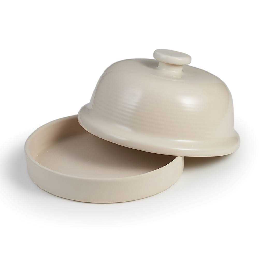 Make Artisan Bread Right at Home! This attractive stoneware bread baker creates the steam that’s needed for crunchy, chewy crusts while bread stays moist and soft. Not only will you get a better crust and delicious results, its vintage-like design will look great in your kitchen – in use or on display! Inspired by the stoneware of yesteryear and made in our home state of Ohio Use in your home oven Bell shaped, blue striped cover has a wide knob on top for easier handling Unglazed bottom pan Microwave and oven safe up to 450°F Lead and cadmium free USA made in Ohio