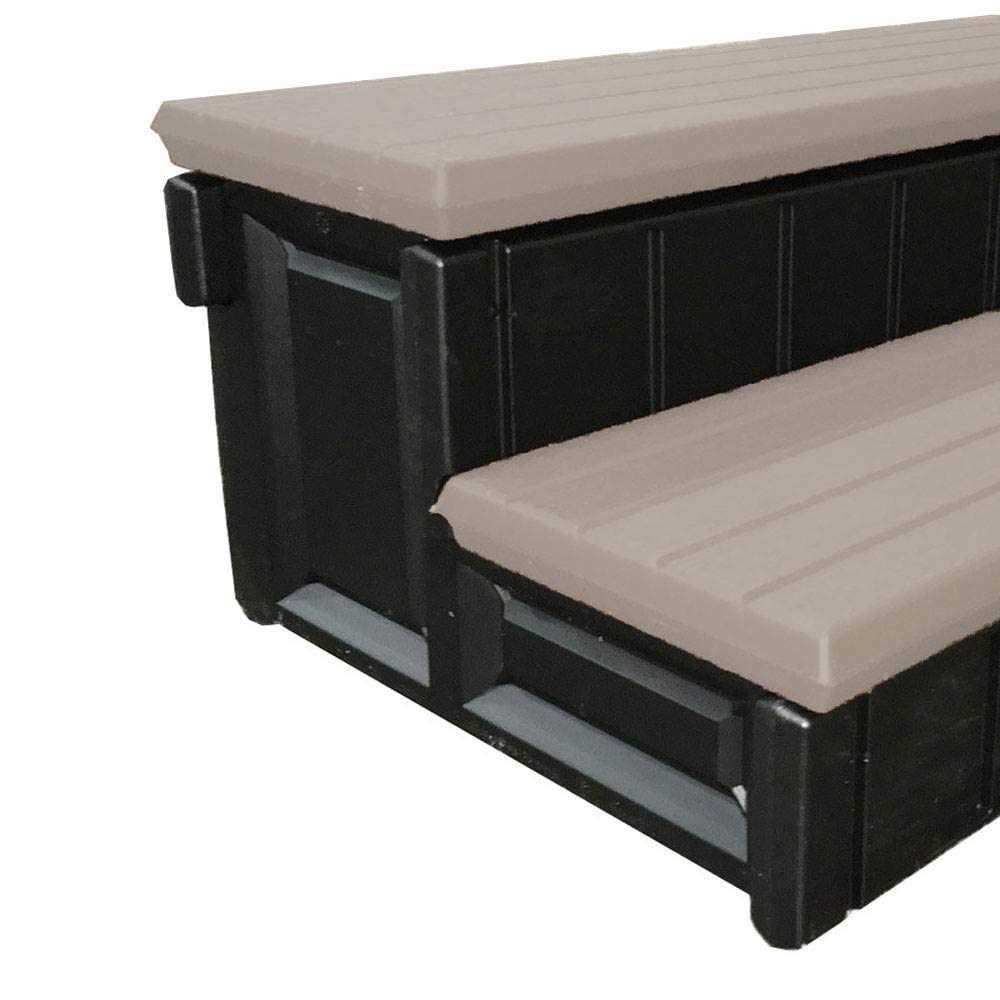 These spa storage steps give a great finished look to any spa. The pieces snap together easily and require absolutely no hardware! They’re made from extremely durable blow molded plastic.Leisure Accents products are designed with today’s homeowner in mind. The all resin products feature easy assembly with a snap-together design, are lightweight yet extremely durable and are maintenance-free. They come in a 2 tone combination of black and the accent color of your choice that will perfectly complement your patio no matter your color scheme. These stairs give a finished and elegant look to any spa. Their attractive 2 tone color of gray and black will complement any decor. You can use these stairs for multi-purpose uses, including around the home, garage, etc.