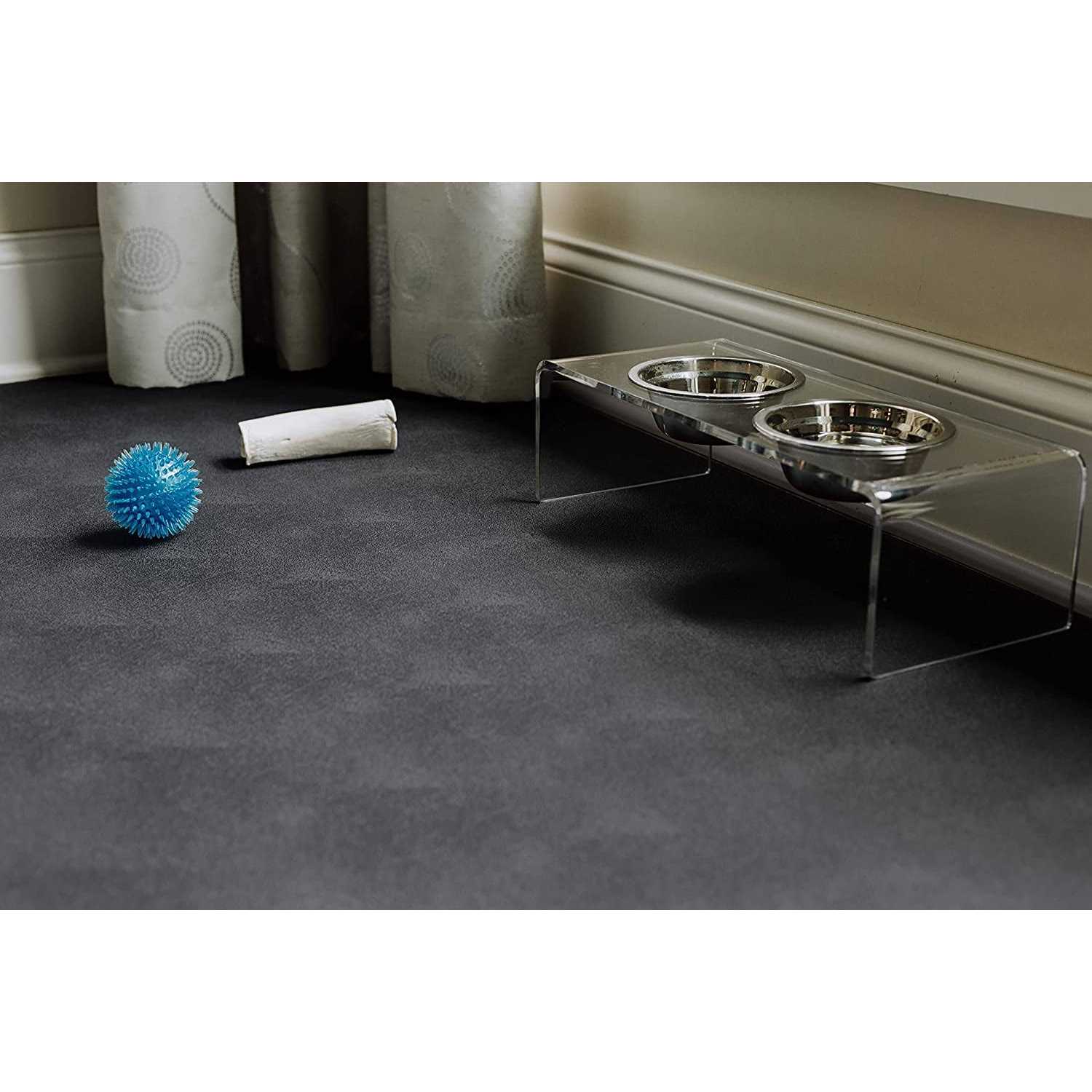 Protecting your low-pile carpet, hardwood, tile and other expensive flooring form pet accidents, the G-Floor Pet Floor Protectors save your subflooring from those unavoidable messes your pets bring. The Slate Grey Levant flooring for pets is a lightweight and repositionable solution that requires no installation and can be used almost anywhere in your home. Measuring 10 ft long by 5 ft wide, this floor protector is completely customizable: all you need is just a utility knife to cut the pet flooring to size to easily fit whatever area of your home you are needing. This pet friendly flooring will be the solution you and your pet are looking for.