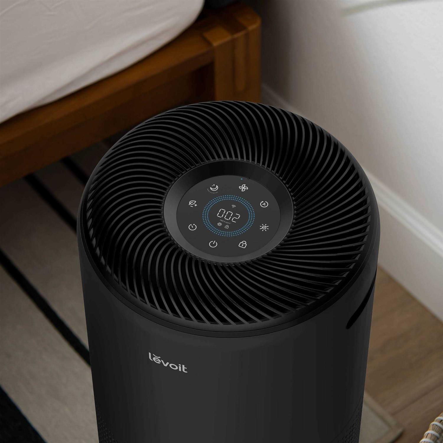 The Levoit PlasmaPro 400S Smart True HEPA Air Purifier changes the air 5x per hour in a 403 sq ft space, running with noise levels as low as 24dB. Filter at least 99.97% of 0.3-micron airborne particles and filter VOCs, odors, fumes, and smoke with 3-stage filtration, while HEPASmart Technology helps filter 99.99% of bacteria and mold and 99.9% of viruses. PlasmaPro Technology releases negative and positive ions into the air, which bind with contaminants and help neutralize them into harmless matter. The laser dust sensor scans surrounding air for airborne particles and displays the amount detected on the PM2.5 display. With smart control, you can control air purifier settings no matter where you are, connect to third-party voice assistants, and receive real-time notifications about air quality and filter life.