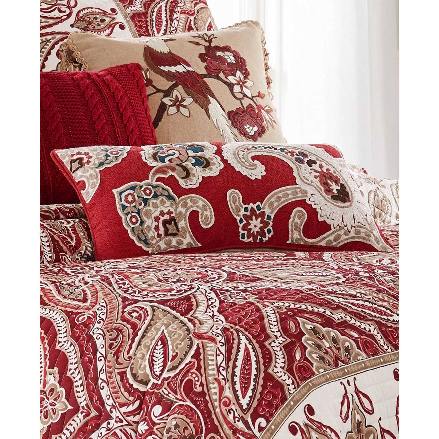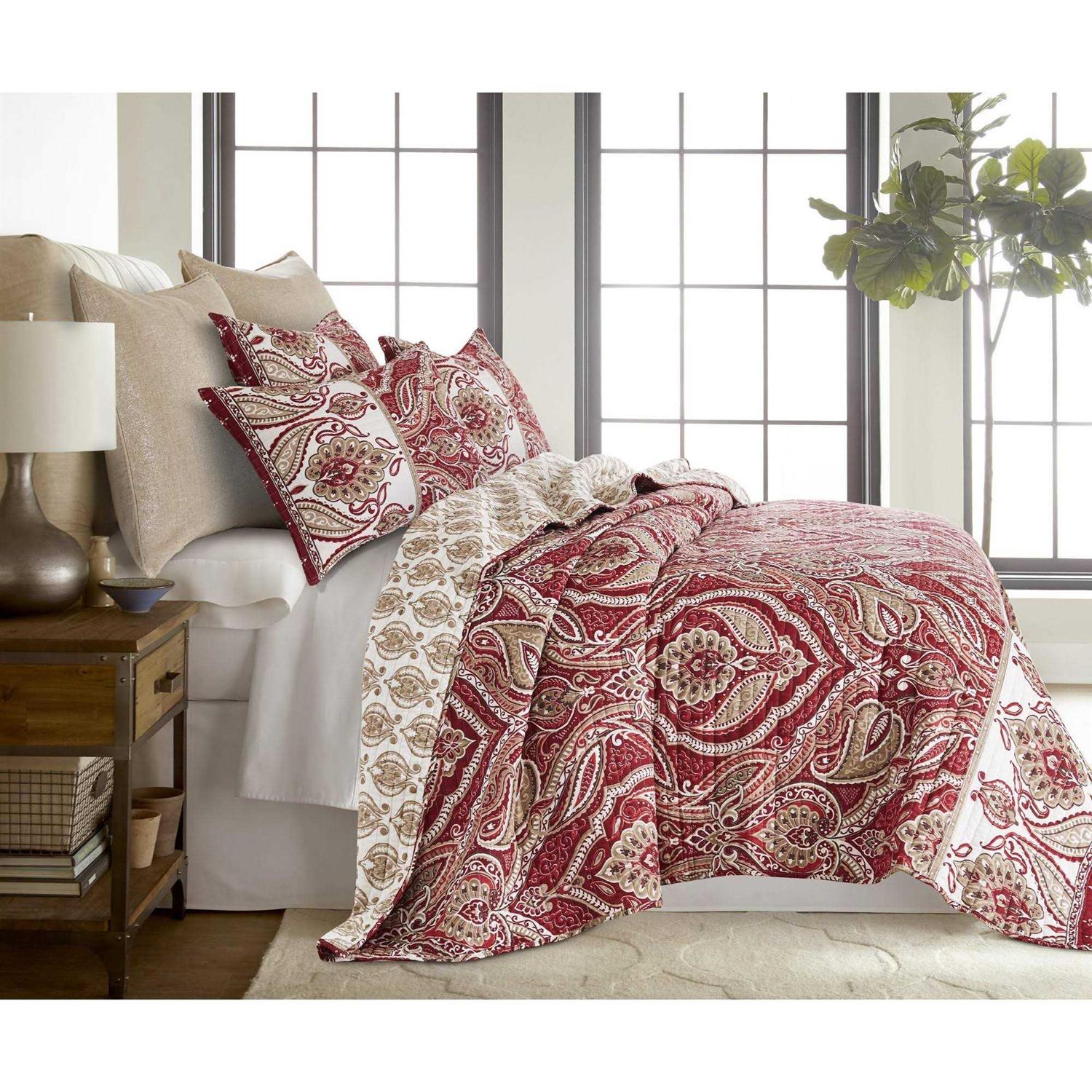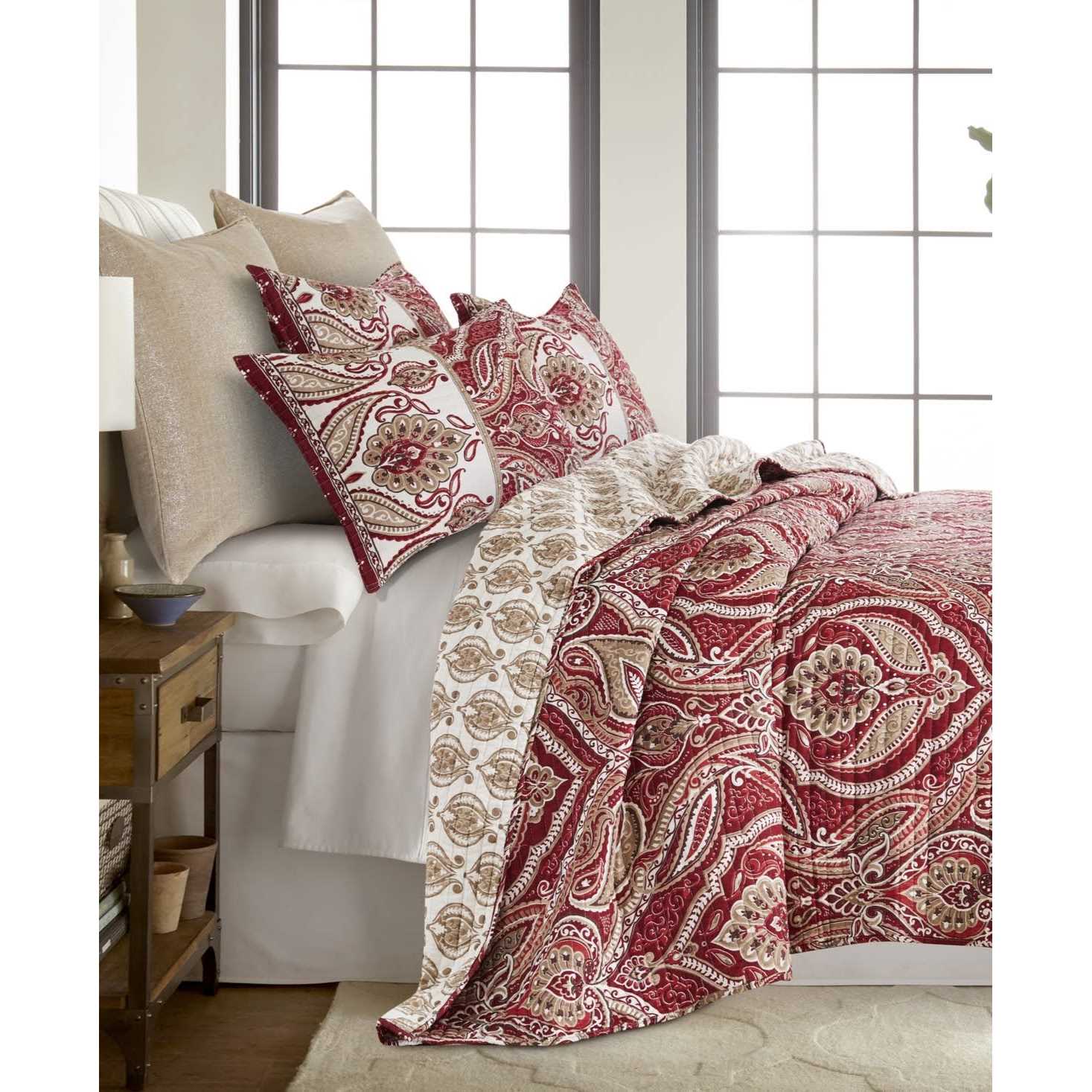The Astrid Reversible Twin/Twin XL Quilt by Villa Lugano for Levtex Home is inspired by antique European wallcoverings and tapestries. Offered in classic red and taupe, this design will immediately transform your bedroom. This reversible quilt features a rich collection of medallions and paisleys offset with a distinctive bottom border on the front, reversing to a small red and taupe medallion on white on the back. The Twin/Twin XL Quilt (68x86in.) is filled with a cotton rich filler and is machine washable. Enjoy this for years to come!