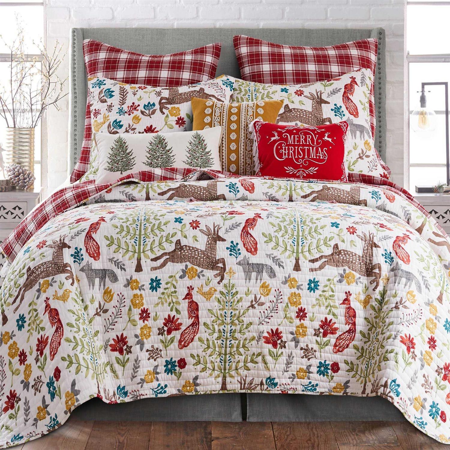 The Folk Deer Euro Shams are the perfect complement to the Levtex Home Folk Deer collection. This is a great accessory to add a layer of dimension and truly complete your bedroom. Sized at 26x26in., the euro shams feature an artisticly detailed nature pattern of trees, flowers, holly, assorted animals, and galloping reindeer. Made from a durable 100% cotton, the Folk Deer euro shams are easy to care for, and will last for years to come. Bring the holidays Home!