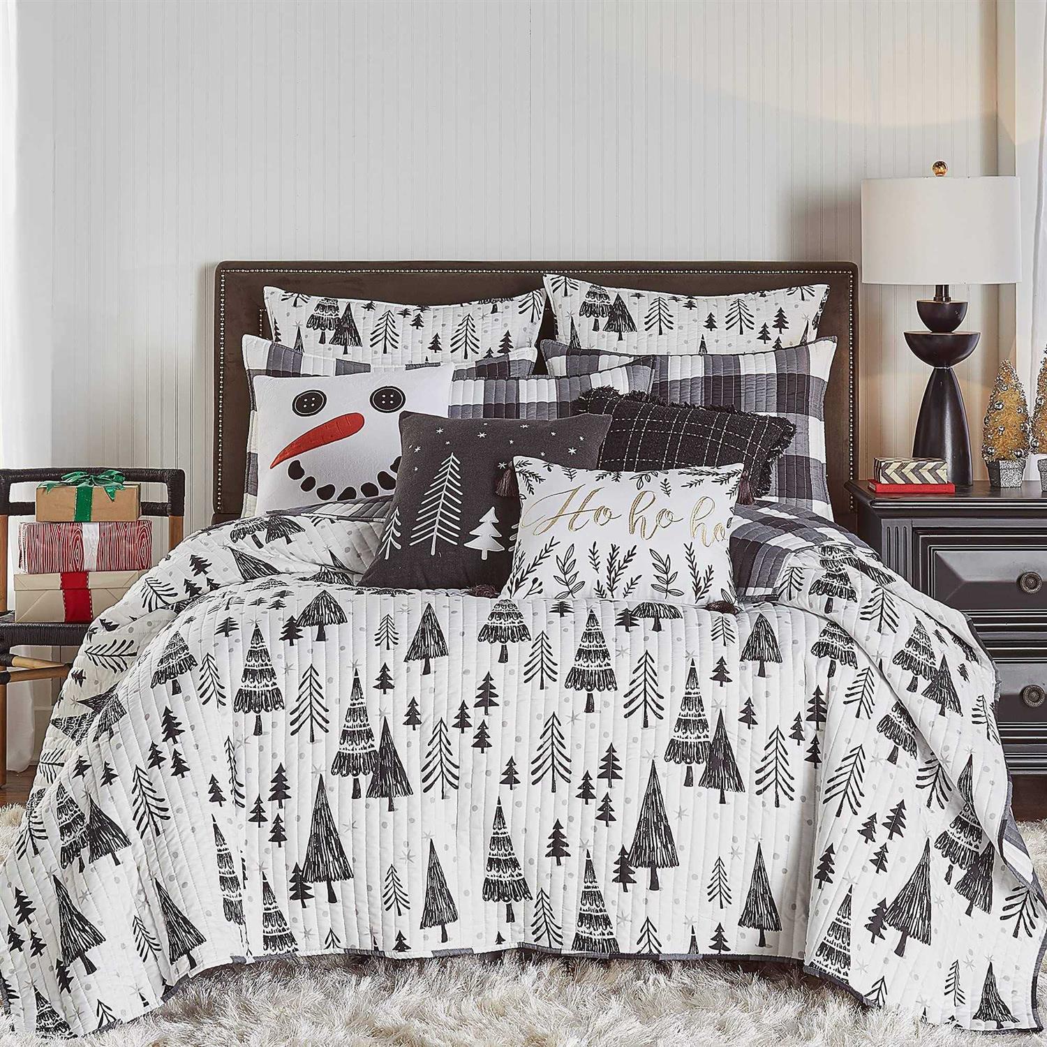 The Northern Star Reversible King Quilt Set by Levtex Home is inspired by a contemporary christmas landscape. Offered in shades of black and white, this design will immediately transform your bedroom. Made with the softest lightweight brushed microfiber, this reversible quilt features a decorative christmas tree design, reversing to a chic buffalo plaid in black and white on the other. The King Quilt Set is machine washable and includes the quilt (106x92in.) and two standard pillow shams (36x20in. ) Bring the holidays home!