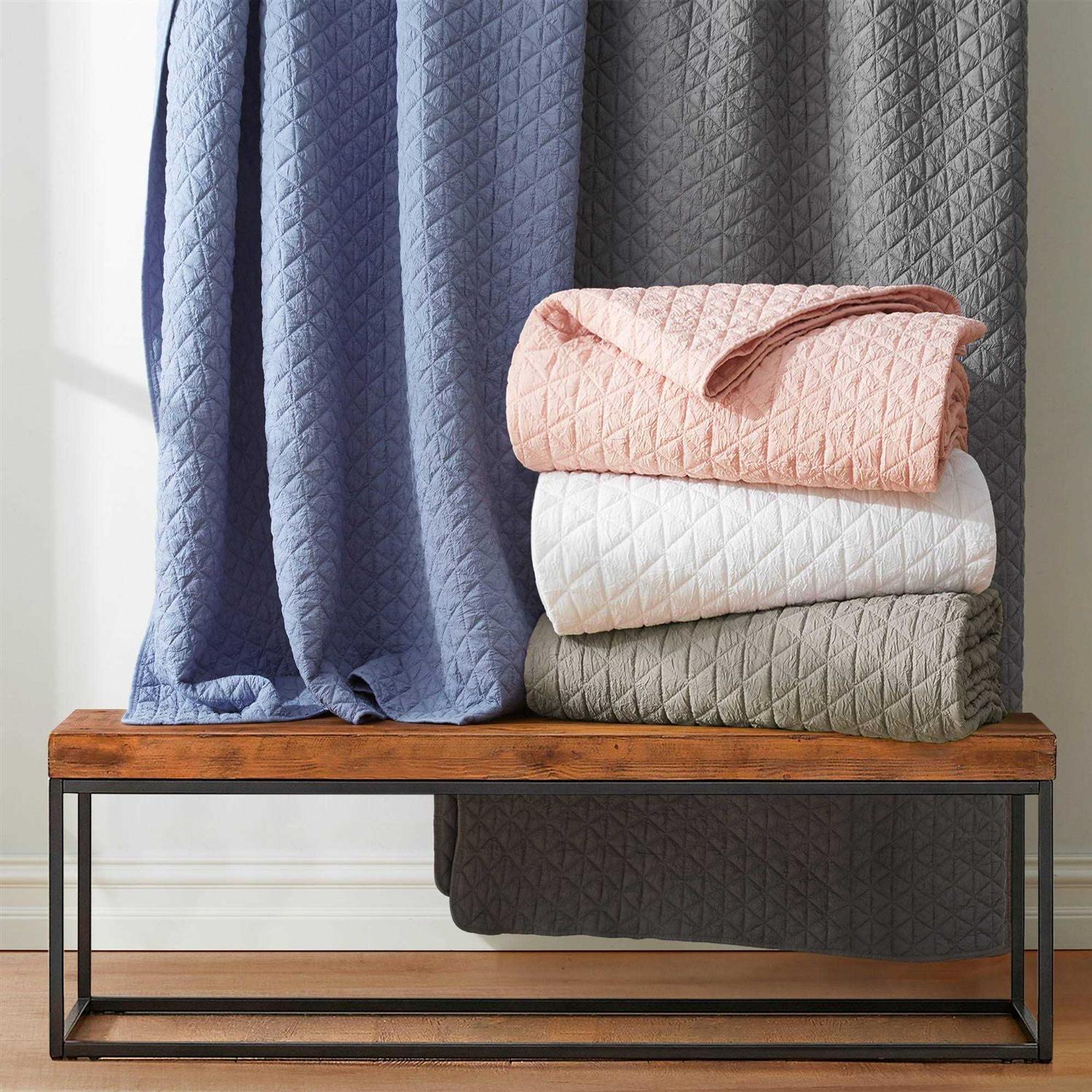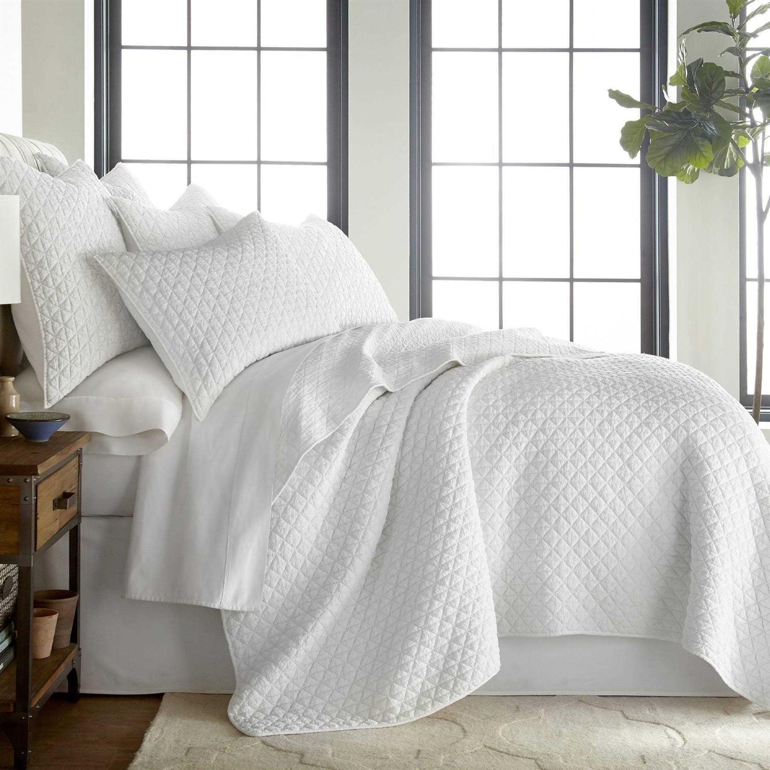 The Rowan Reversible Full/Queen Quilt Set HomThreads by Levtex Home is inspired by boho chic fashion. Offered in white, this design will immediately transform your bedroom. This reversible quilt features beautiful chic crinkle quilted diamond design on the front, reversing to a solid white on the back. The Full/Queen Quilt (88x92in.) and two Shams (20x26in.) have a microfiber front and 0 back, filled with a cotton-rich filler and are machine washable. Enjoy this for years to come!